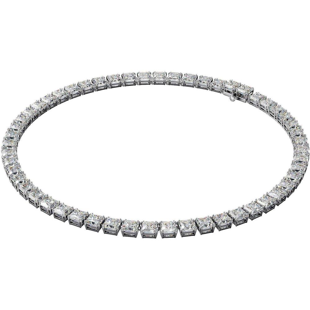 Swarovsk Matrix All-Around Necklace, Bracelet, Clip Earrings, Clear Square-Cut Crystals, Rhodium(Choker Necklace)