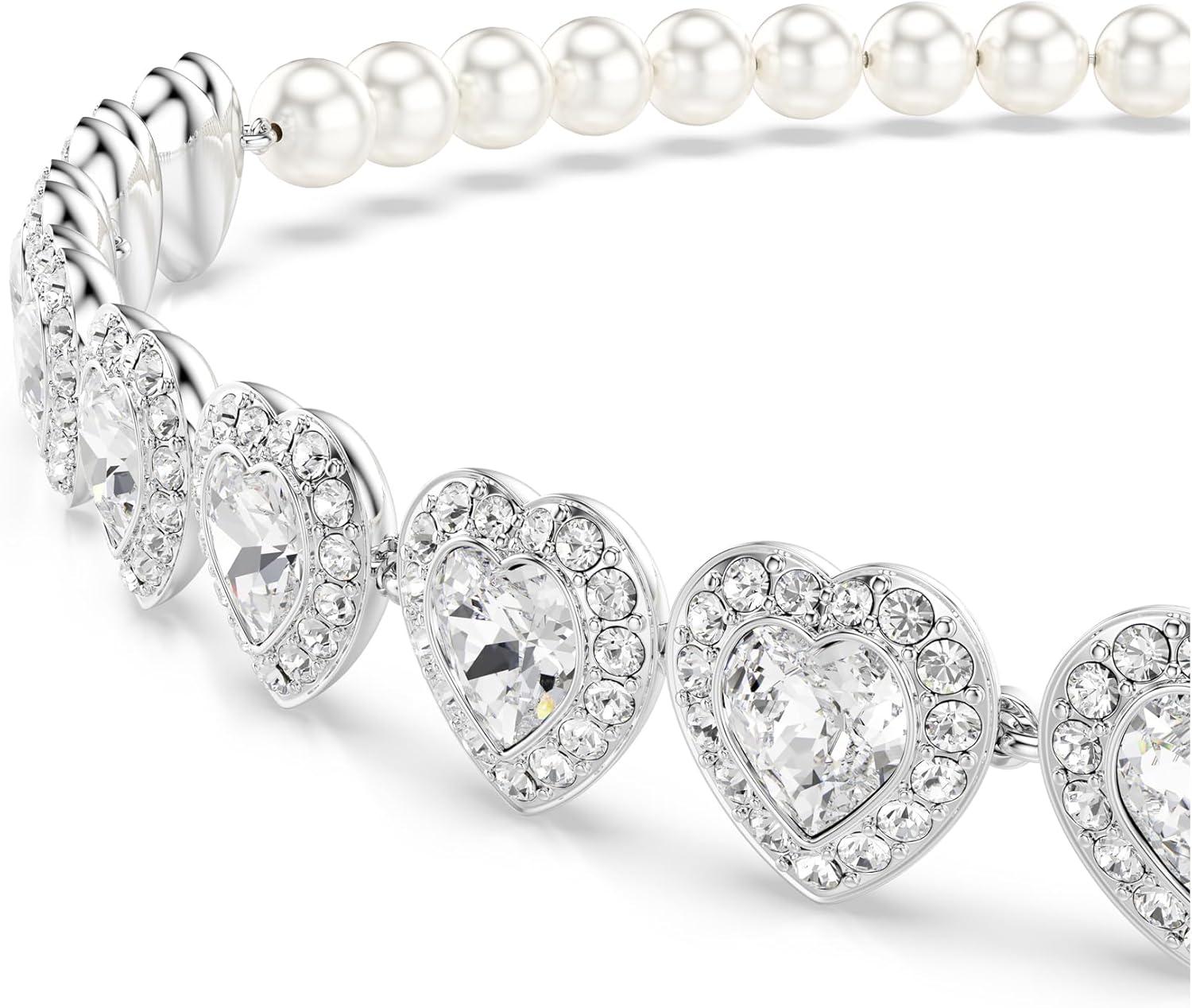 Swarovski Ariana Grande Collection, Clear Crystal & Pearls, Rhodium Finish, Necklaces, Earrings and Bracelets(Heart Crystal Choker)