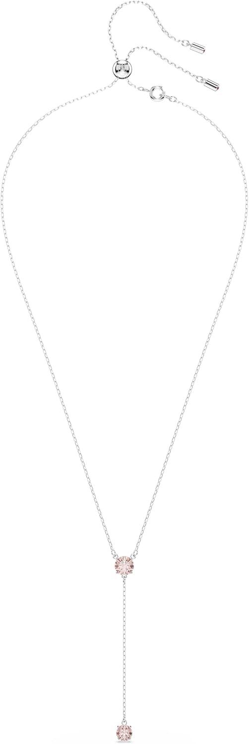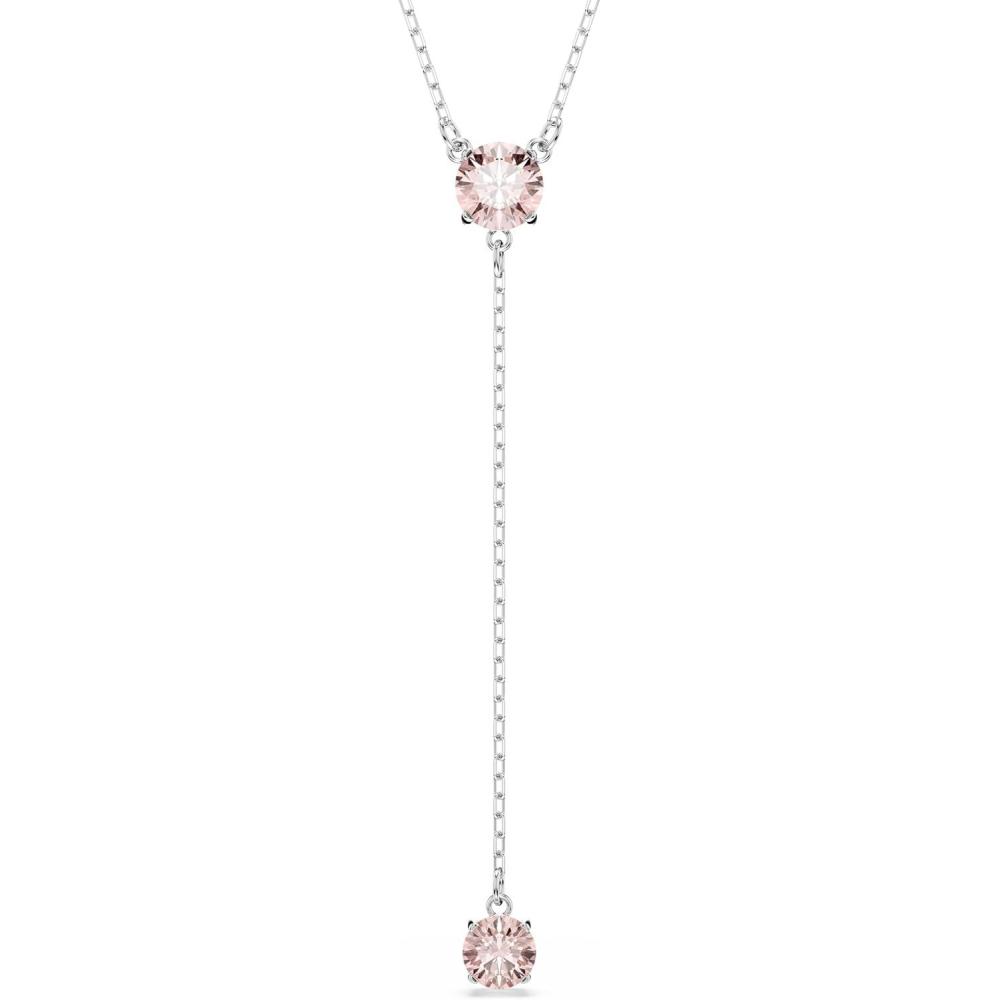 Swarovski Attract Crystal Y Necklace, Round Cut, Blue & Pink Stones, Rhodium Finish, Part of the Attract Collection(Pink Crystal/Rhodium Finish)