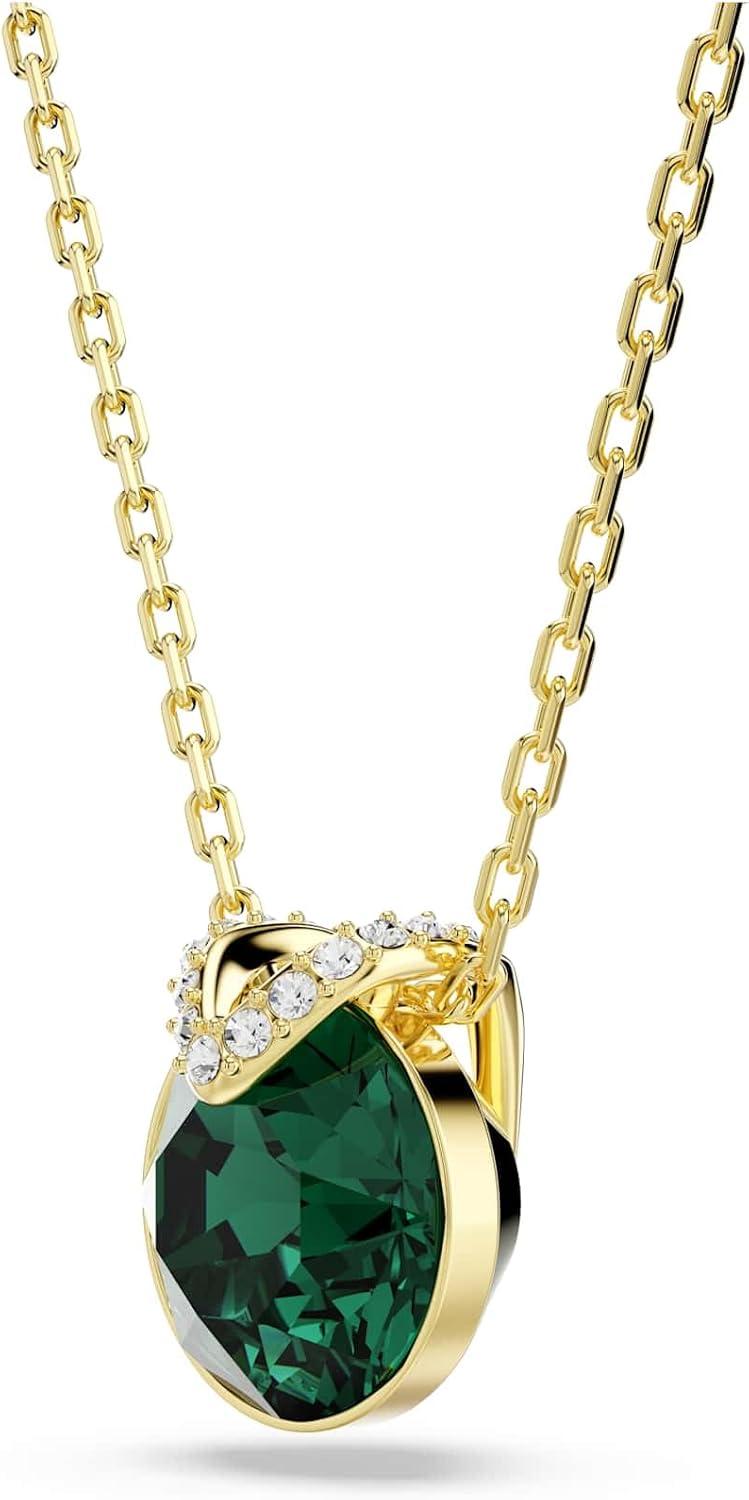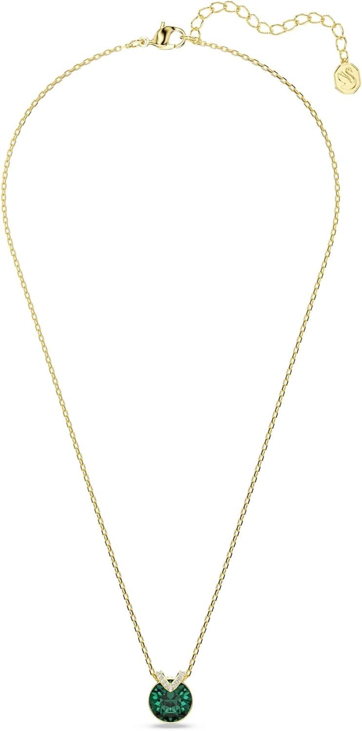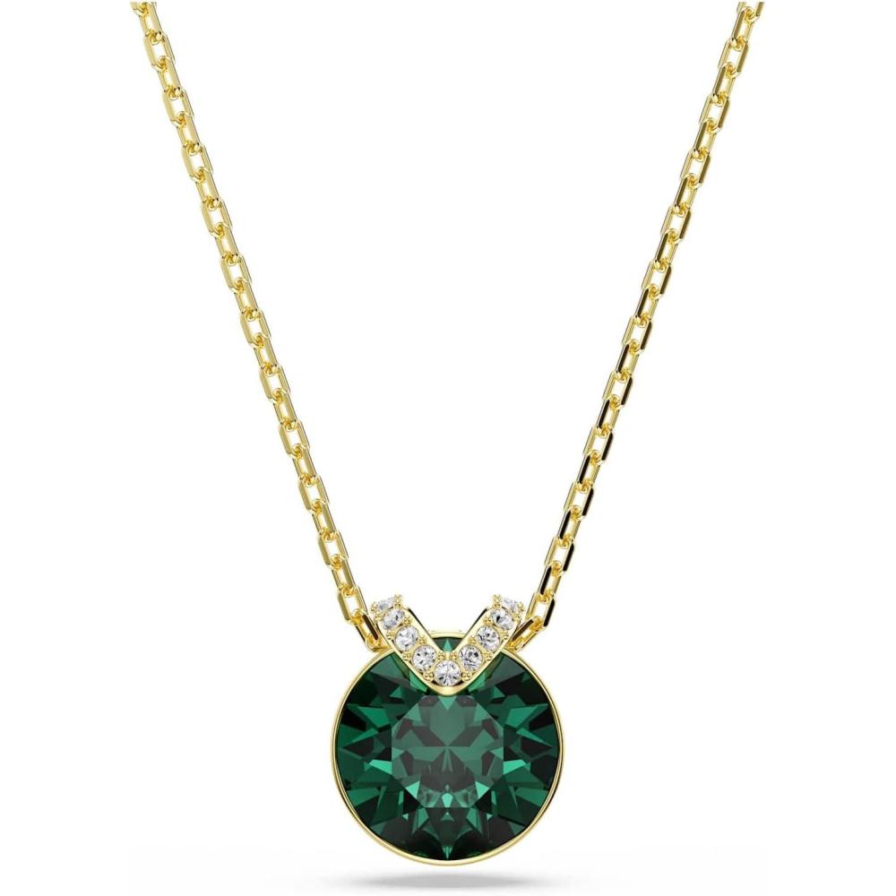 Swarovski Bella V pendant, Round cut, Green, Gold-tone finish