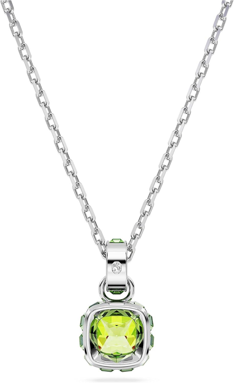 Swarovski Birthstone Stud Earring Collection, Square-Cut Stone and Crystals, Rhodium Finish(August – Green)