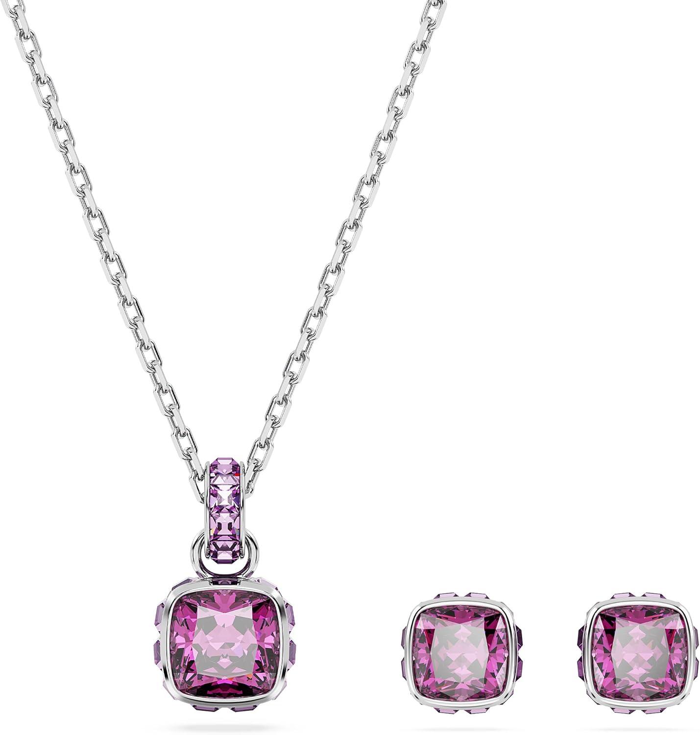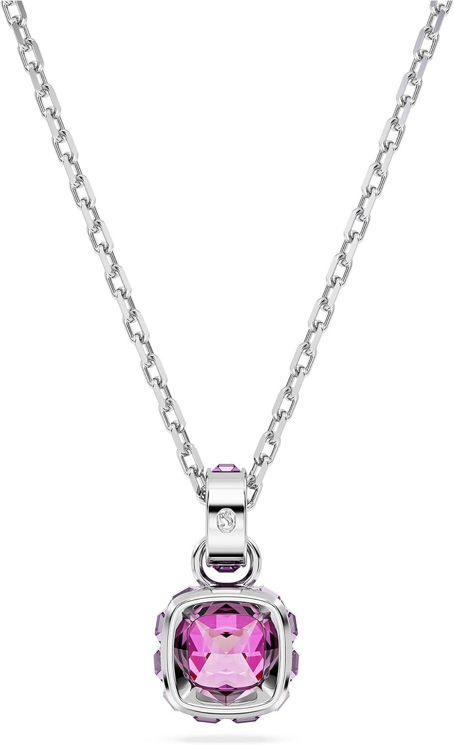Swarovski Birthstone Stud Earring Collection, Square-Cut Stone and Crystals, Rhodium Finish(February – Pink)
