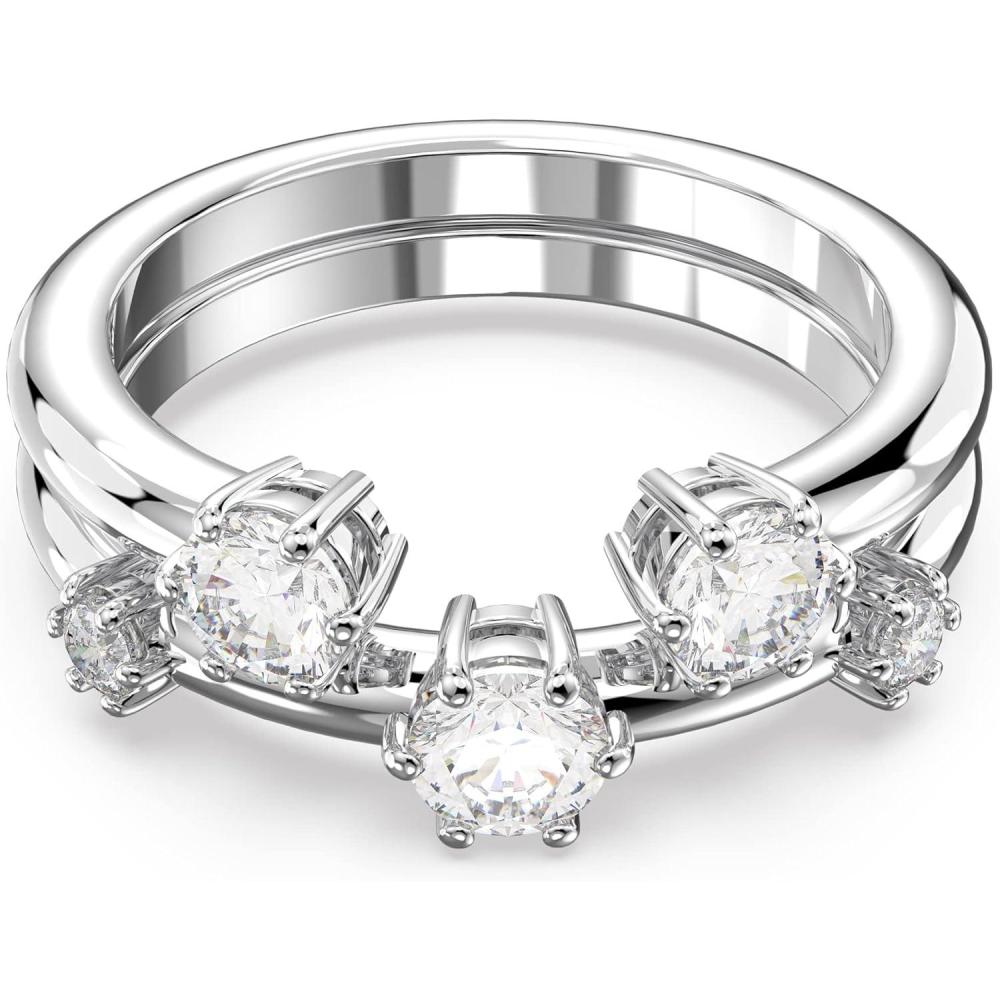 Swarovski Constella ring, Set (2), Round cut, White, Rhodium plated