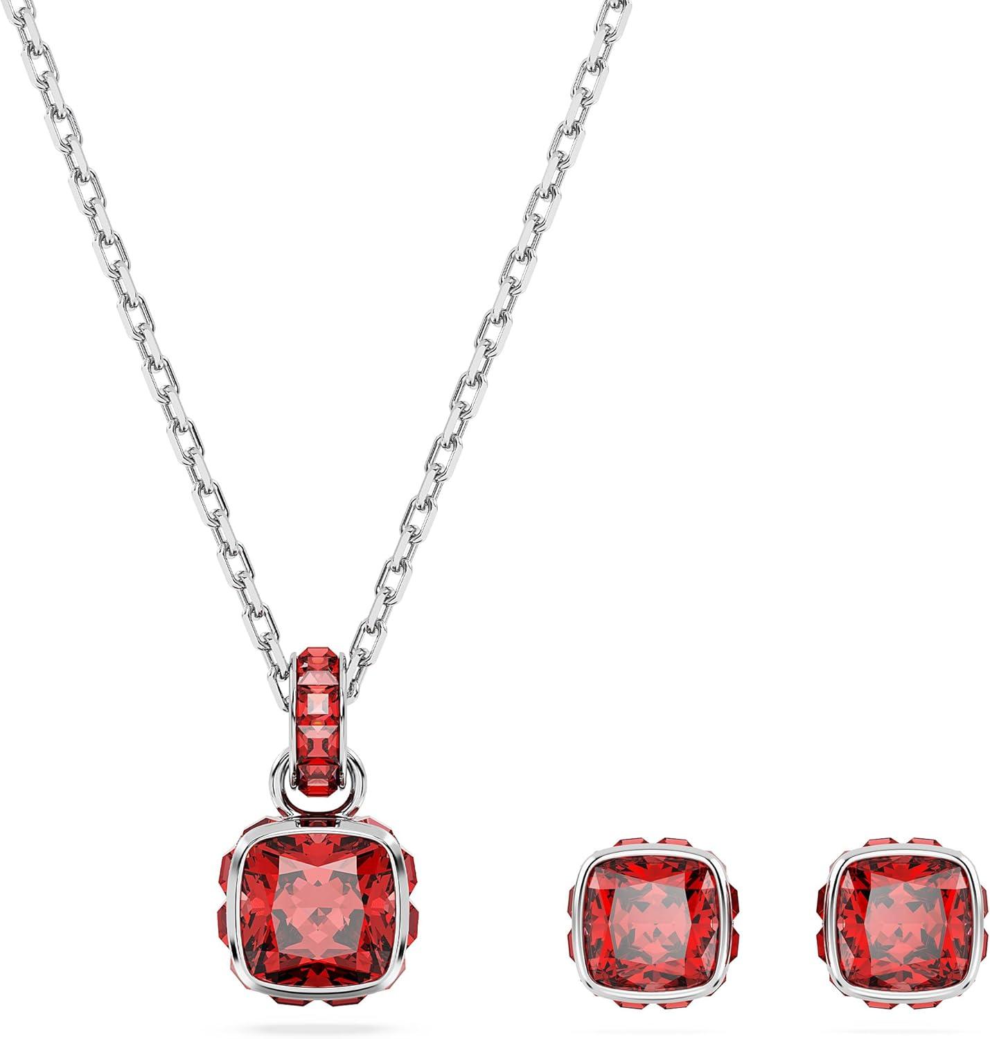 Swarovski Crystal Chroma Jewelry Collection, Heart Shaped Crystal, Latch Back Earring Closure, Lobster Claw Clasp Bracelet(July – Red)