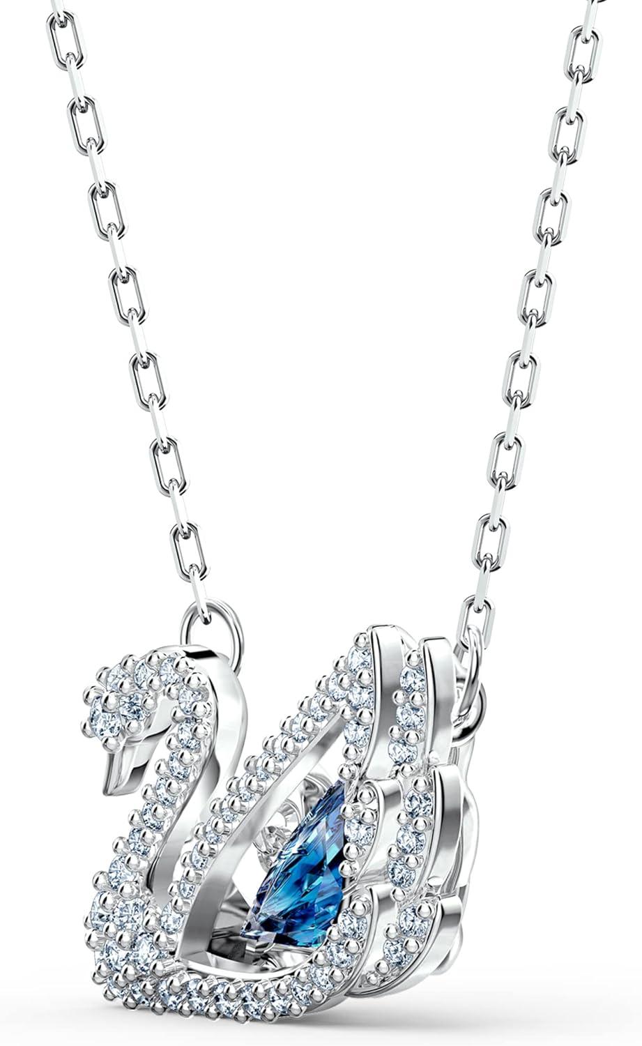 SWAROVSKI Dancing Swan Necklace Jewelry Collection, Rhodium Finish, Blue Crystals, Clear Crystals(Blue Crystals)