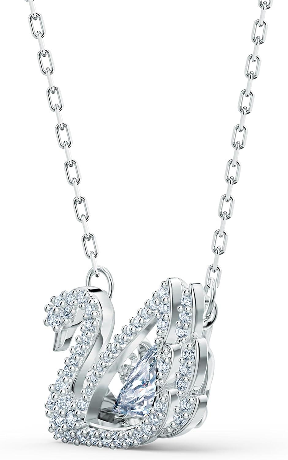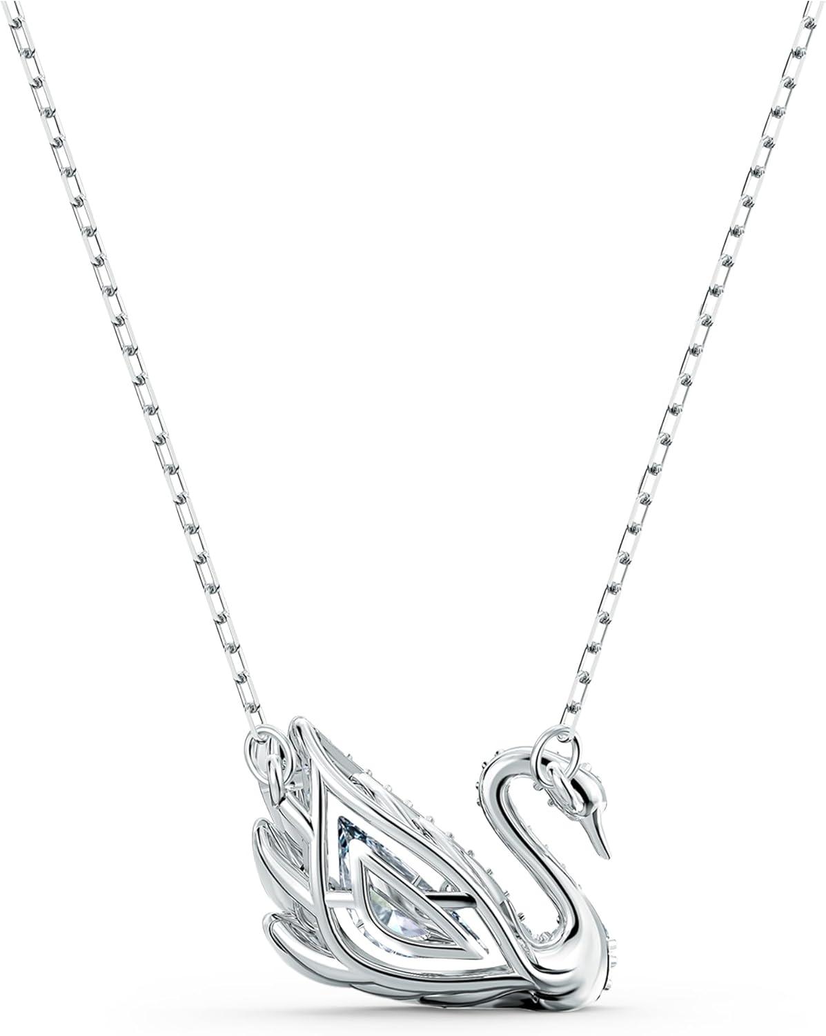 SWAROVSKI Dancing Swan Necklace Jewelry Collection, Rhodium Finish, Blue Crystals, Clear Crystals(Clear Crystals)