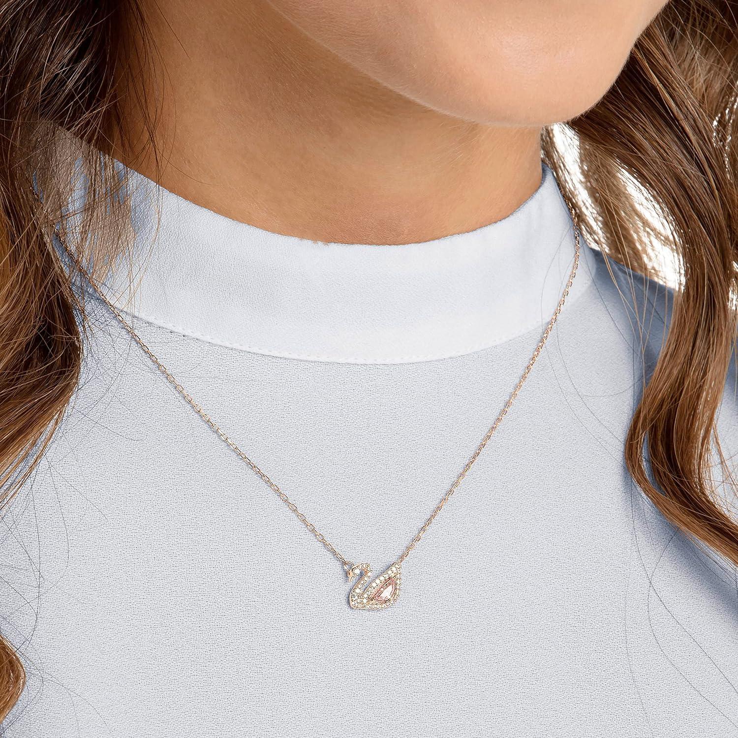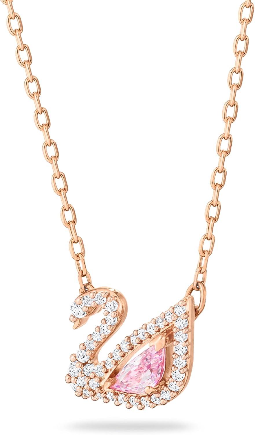 SWAROVSKI Dazzling Swan Jewelry Collection, Blue Crystals, Pink Crystals, Clear Crystals(Pendant Necklace – Rose Gold Tone)