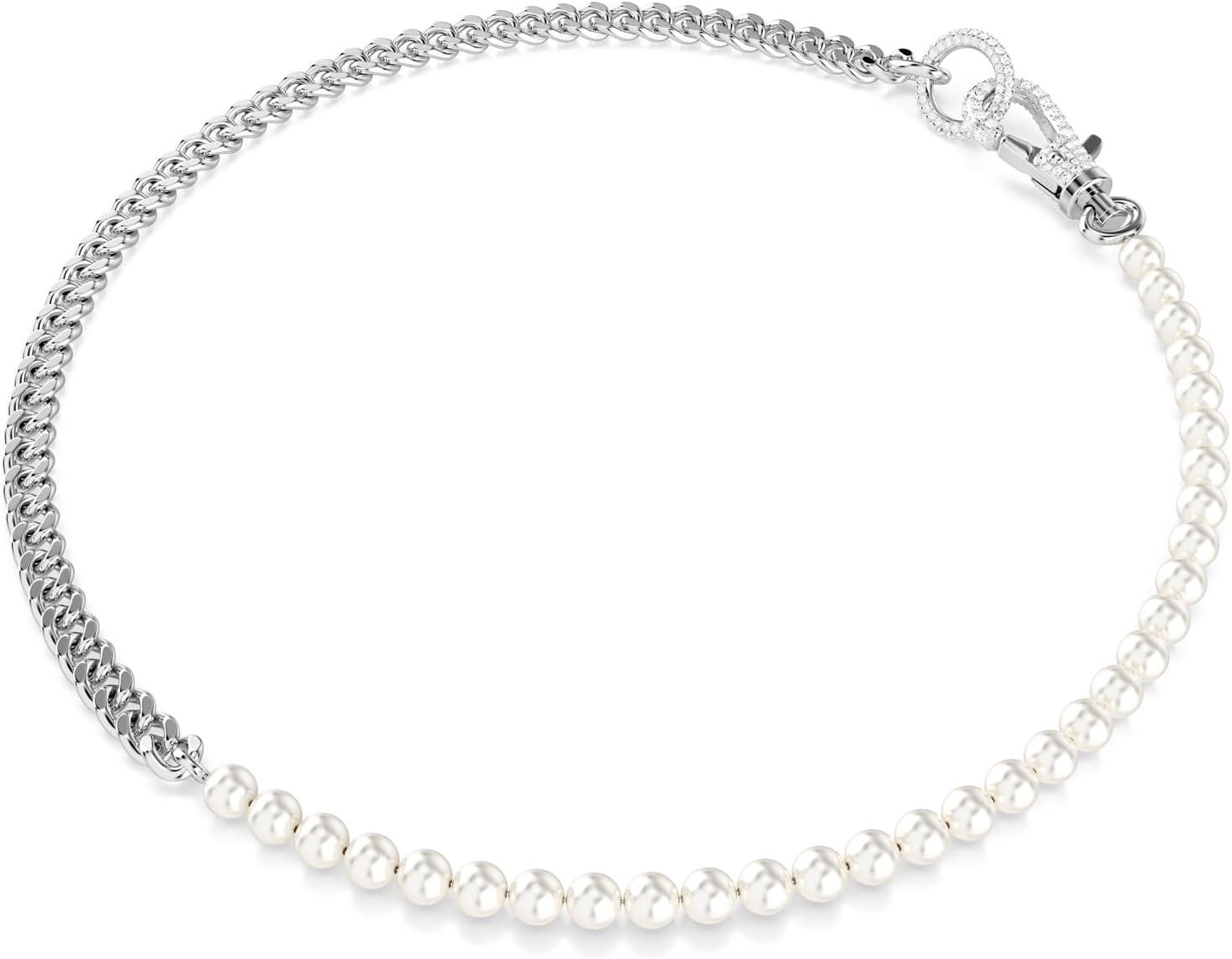 Swarovski Dextera Necklace, Pavé, Crystal Pearl, Clear, Rhodium Finished