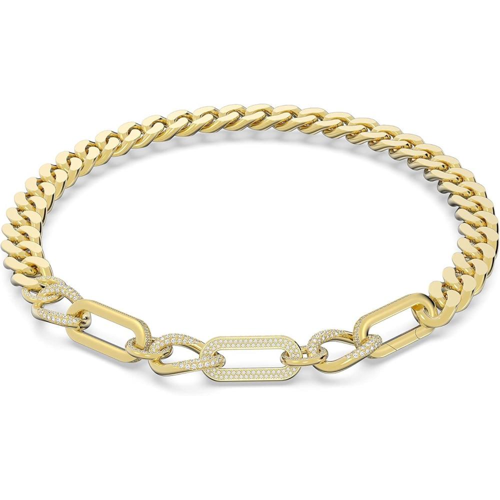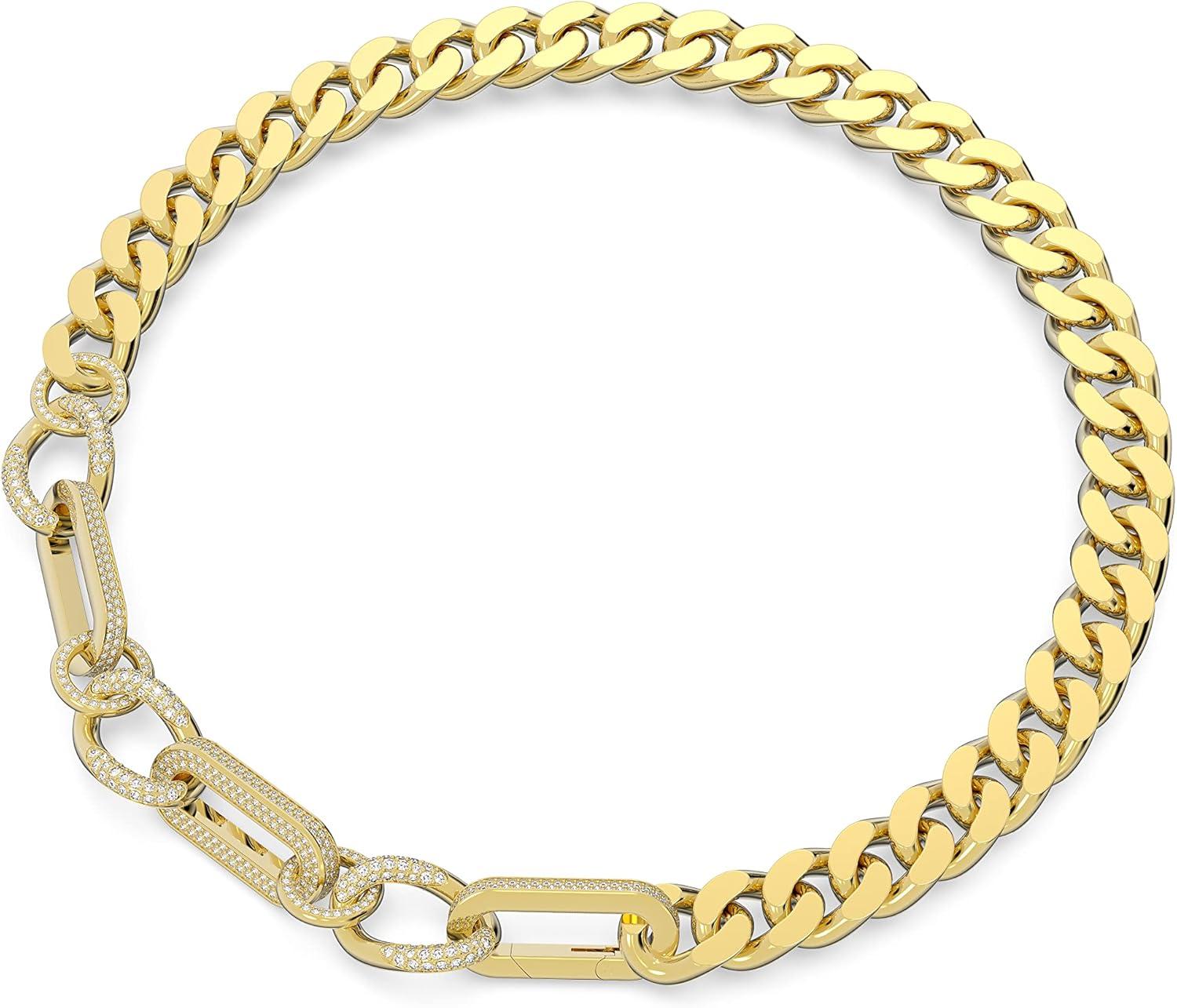 Swarovski Dextera Necklace, Statement, Mixed links, White, Gold-tone Finish