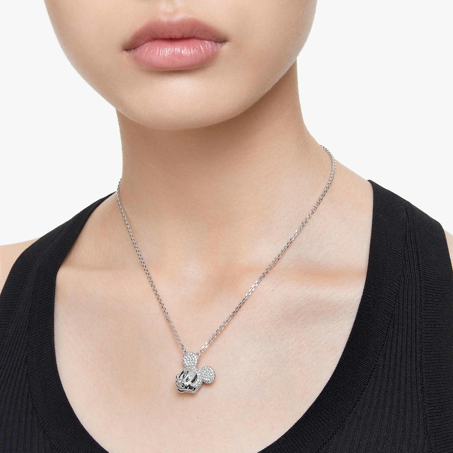 Items delivered: (1) Swarovski Disney100 pendant necklace featuring a Mickey Mouse-inspired motif with clear pavé crystals in a rhodium finished setting, complete with Swarovski necklace box