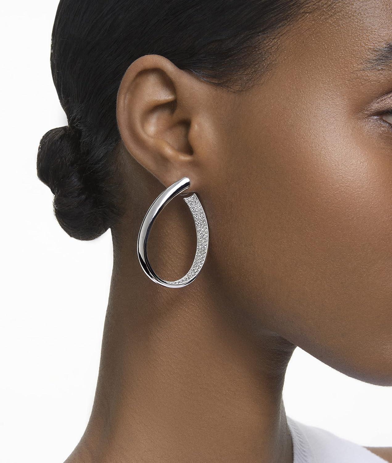 Swarovski Exist Crystal Earring and Necklace Jewelry Collection, Clear Crystals(Hoop Earrings – Rhodium Finish)