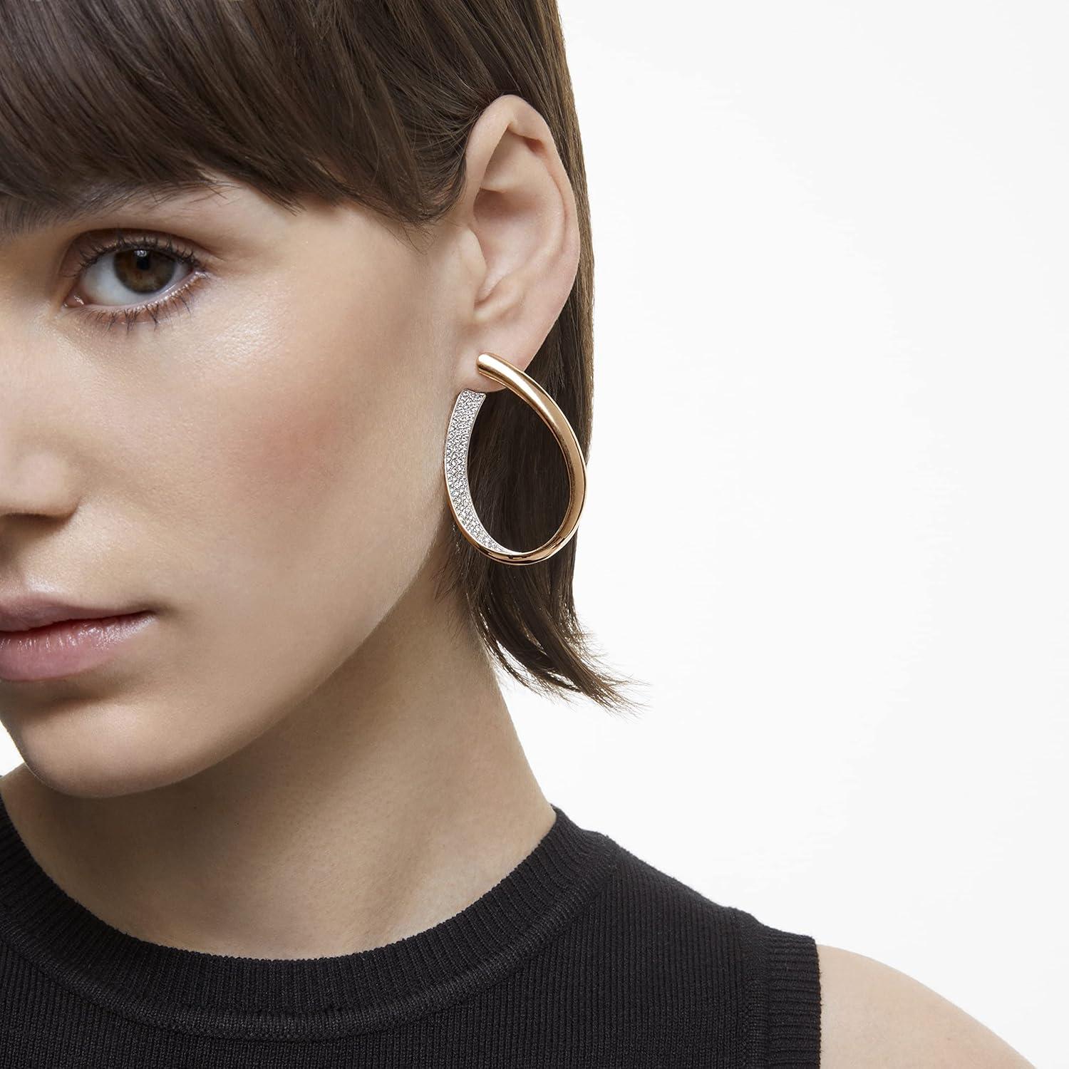 Swarovski Exist Crystal Earring and Necklace Jewelry Collection, Clear Crystals(Hoop Earrings – Rose-gold Tone Finish)