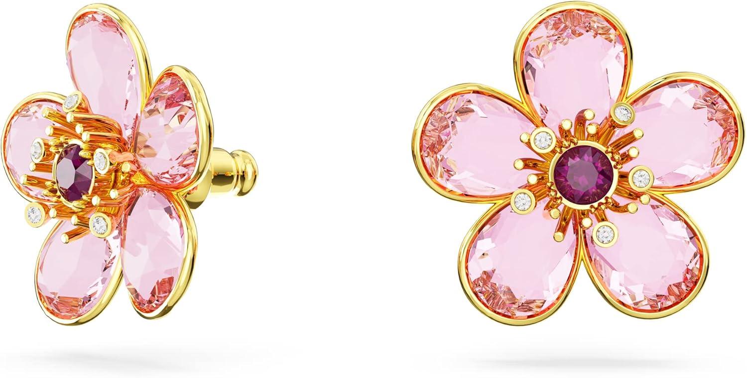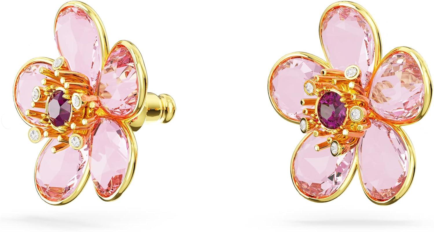 Swarovski Florere Necklace and Earrings Collection, Pink Crystals, Yellow Crystals, Gold Tone Metal Finish(Pink Flower Earrings)