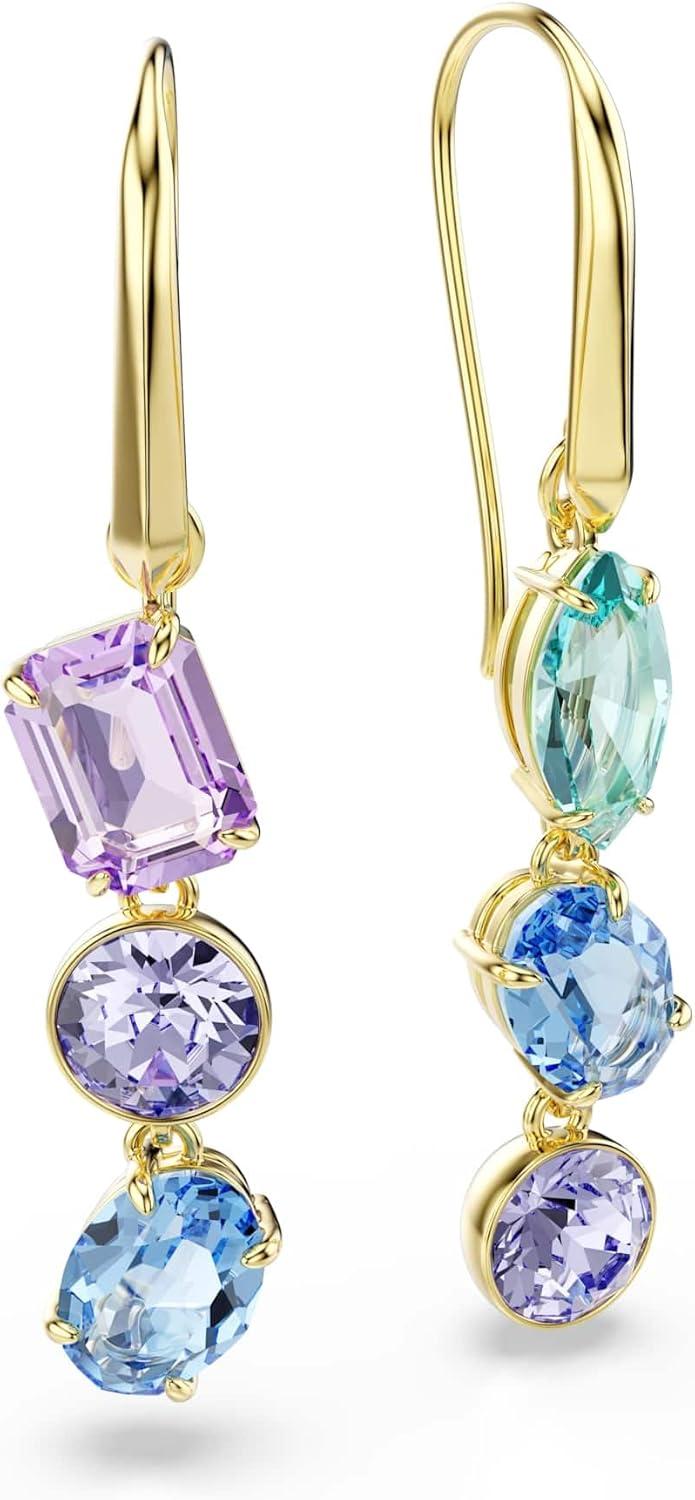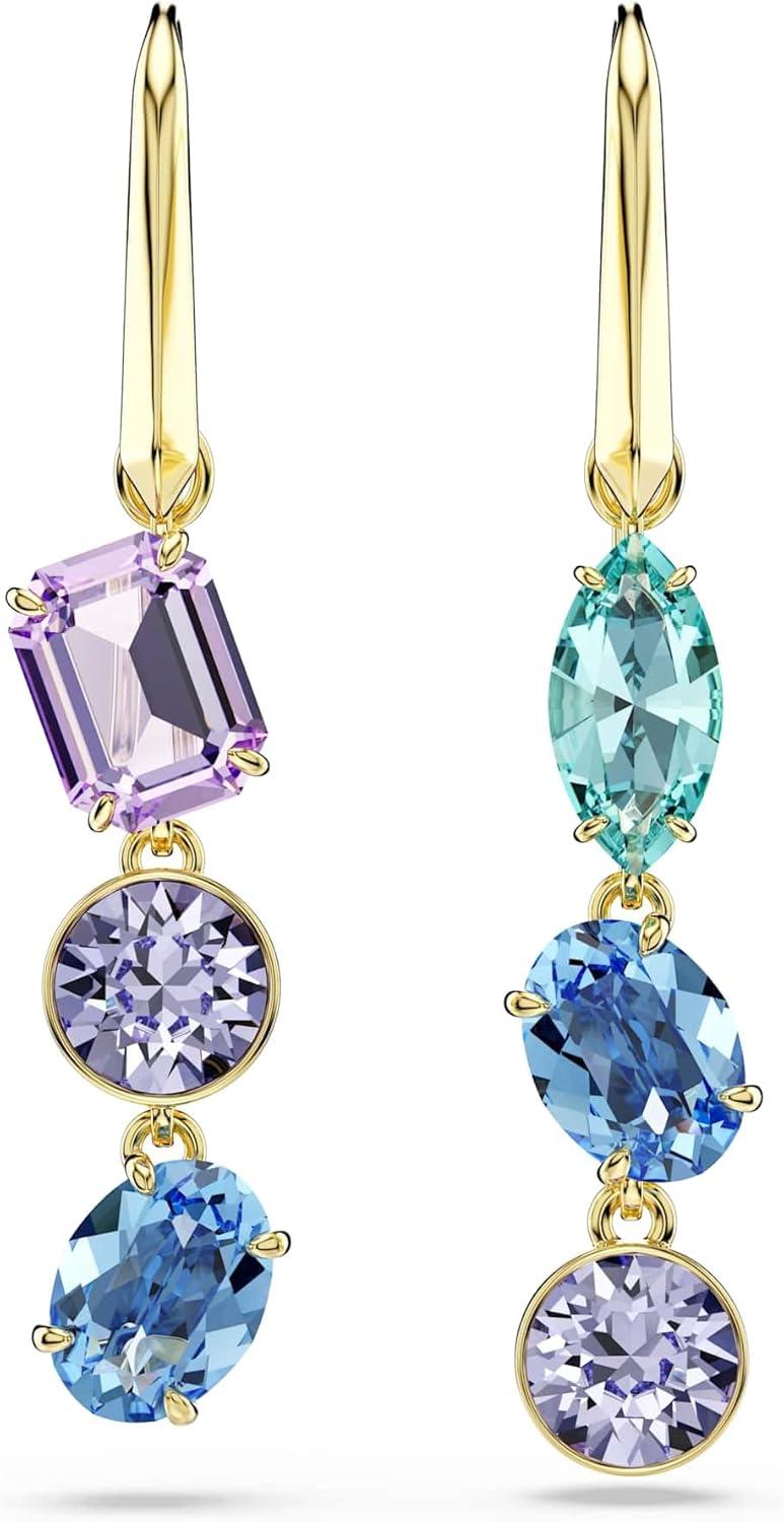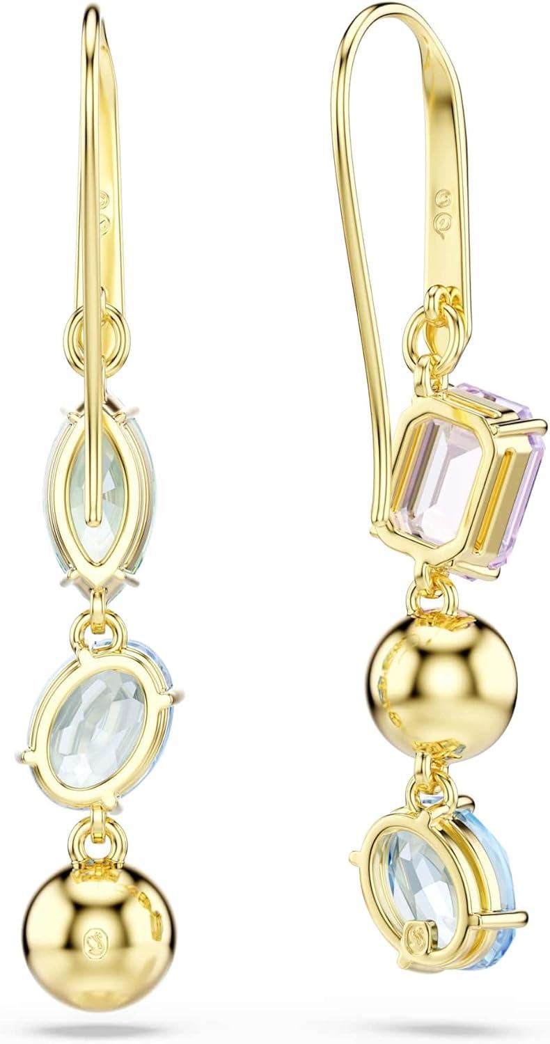 Swarovski Gema drop earrings, Asymmetrical design, Mixed cuts, Multicolored, Gold-tone plated