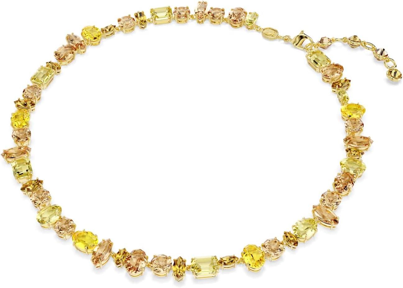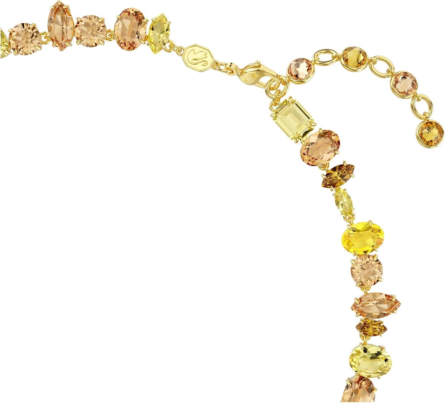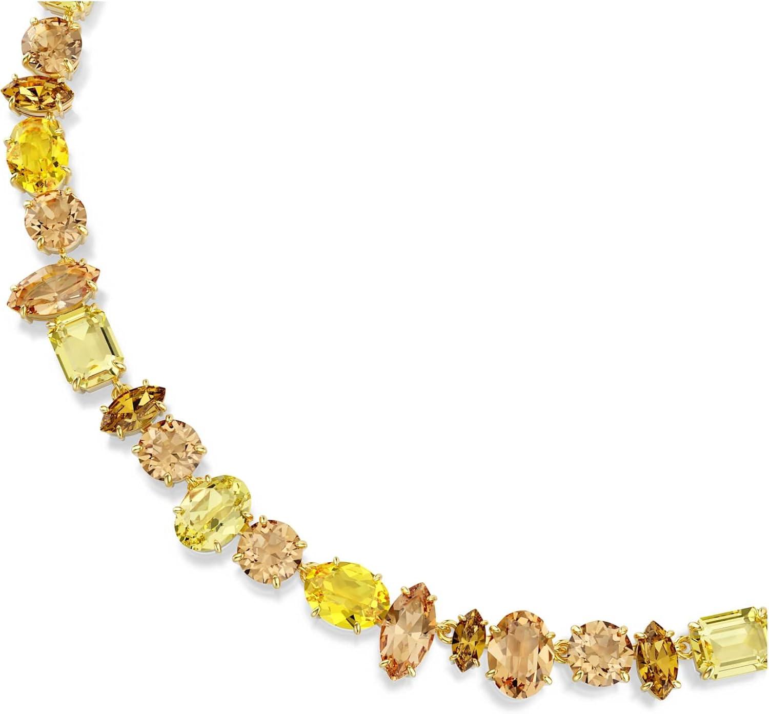 Swarovski Gema Tennis necklace, Mixed cuts, Yellow, Gold-tone plated