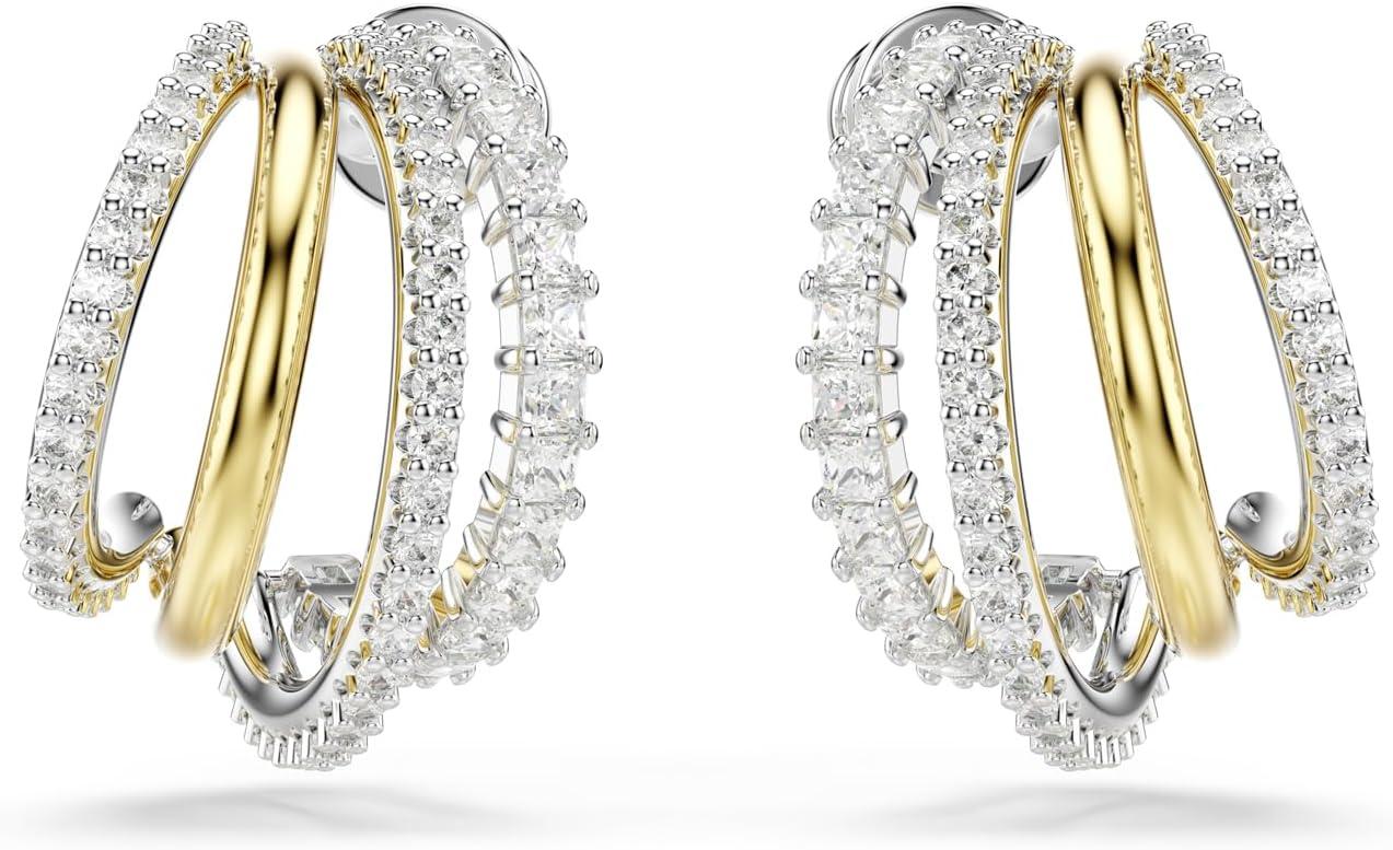 Swarovski Hyperbola Hoop Earrings, Mixed Cuts, Mini, Clear, Mixed Metal Finish
