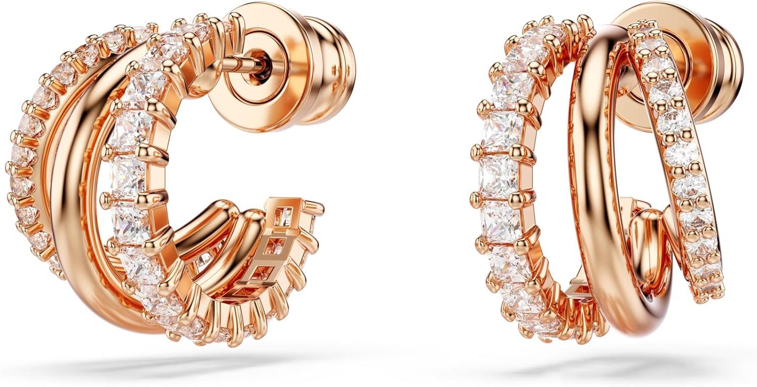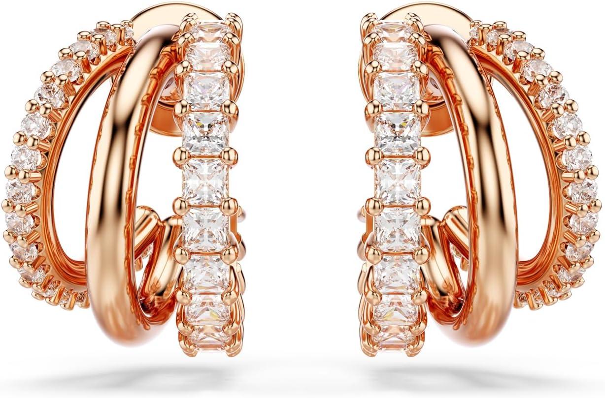 Swarovski Hyperbola Hoop Earrings, Mixed Cuts, Mini, Clear, Rose Gold-Tone Finished