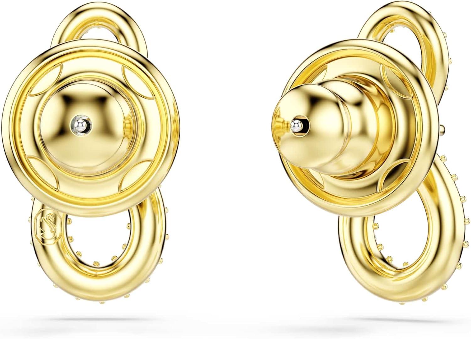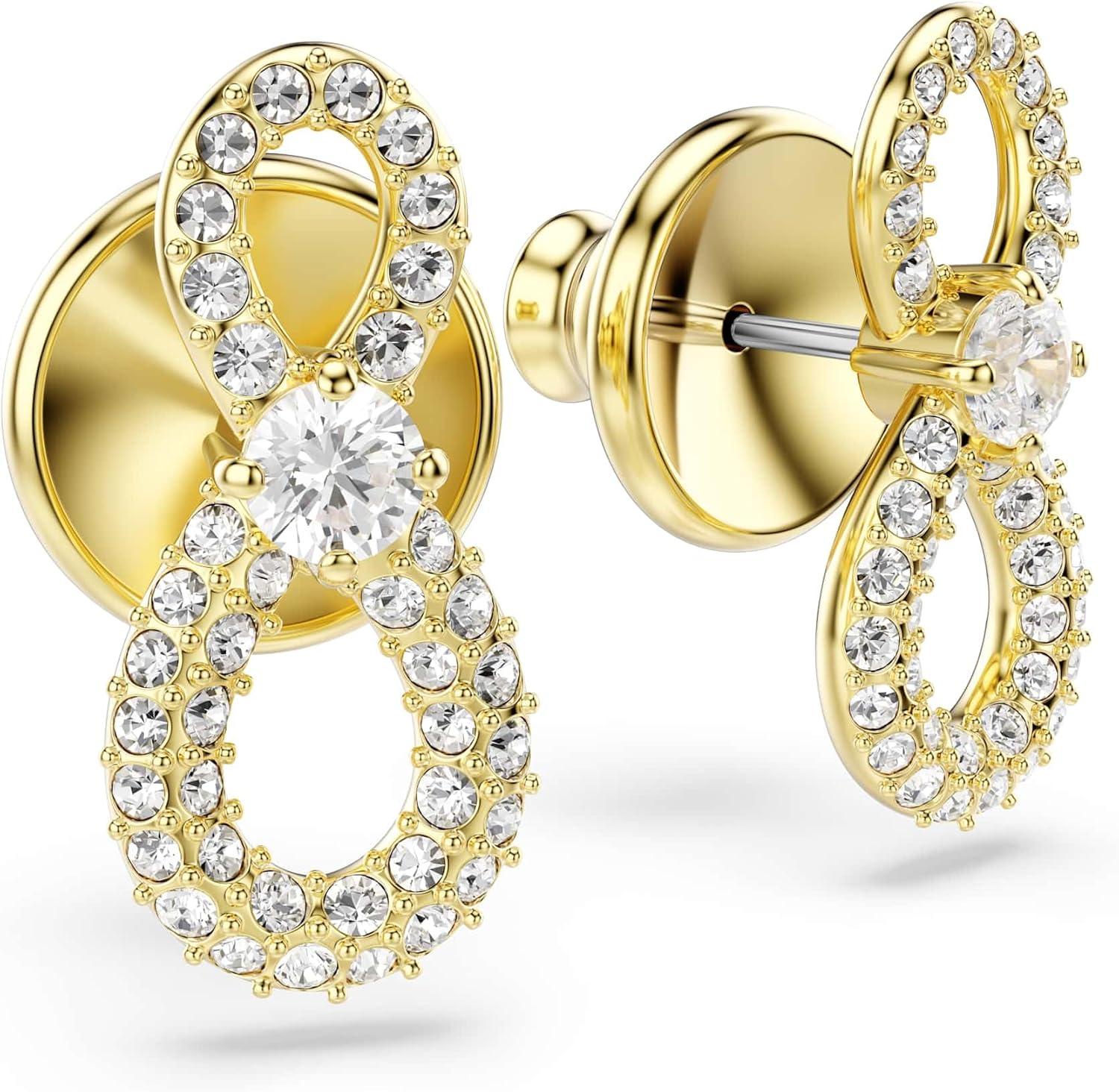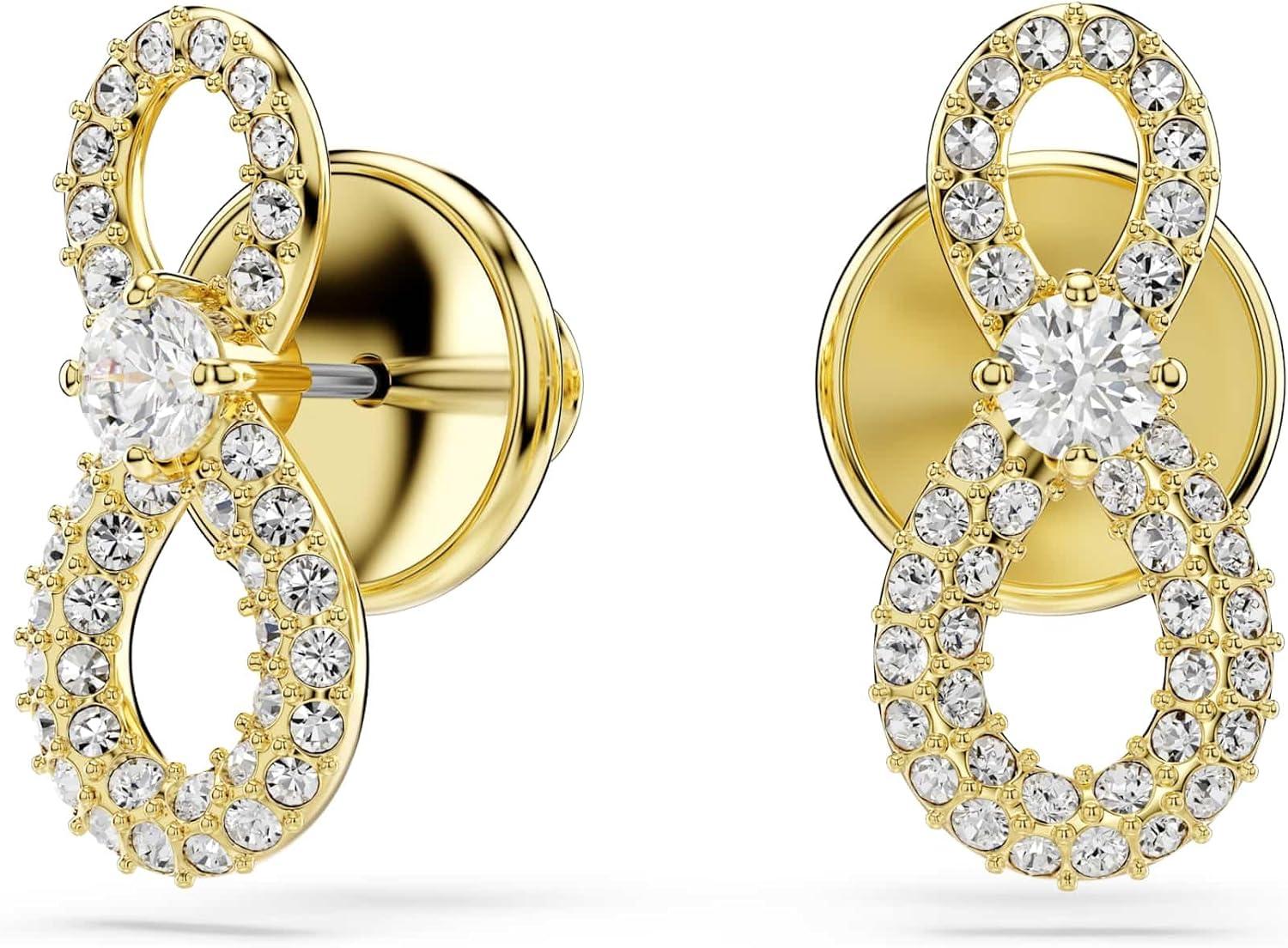 Swarovski Hyperbola stud earrings, Round cut, Pavé, Infinity, White, Gold-tone plated