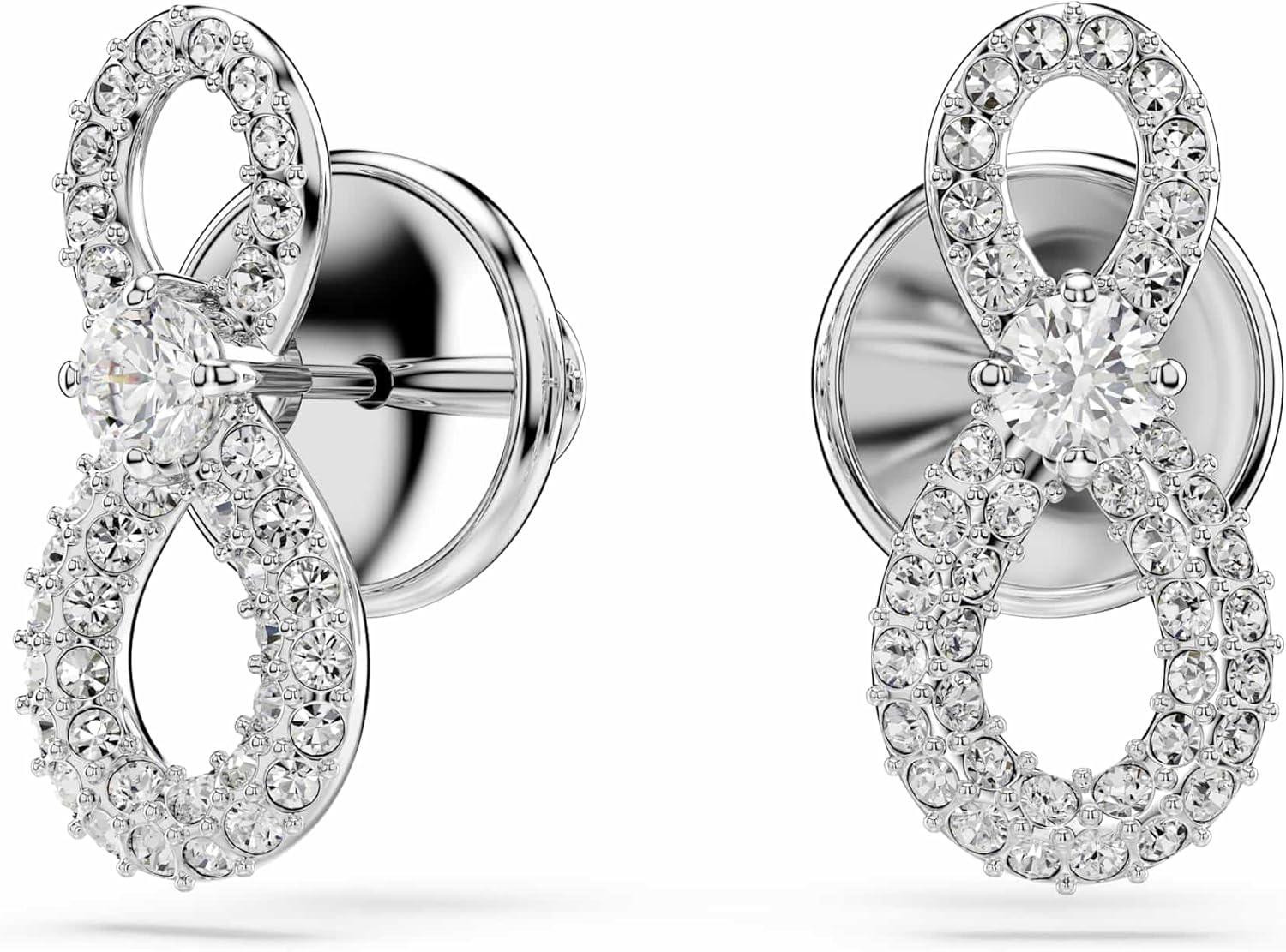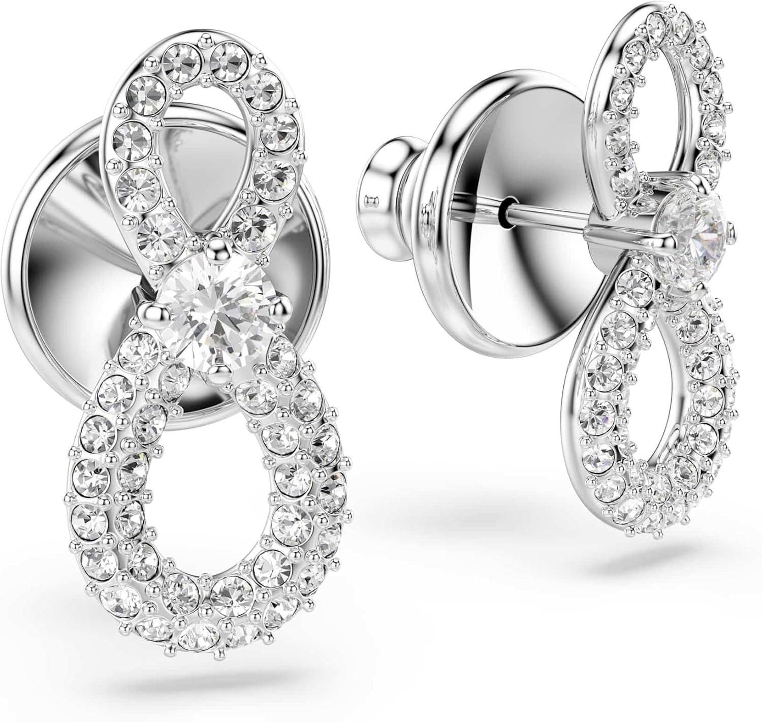 Swarovski Hyperbola stud earrings, Round cut, Pavé, Infinity, White, Rhodium plated