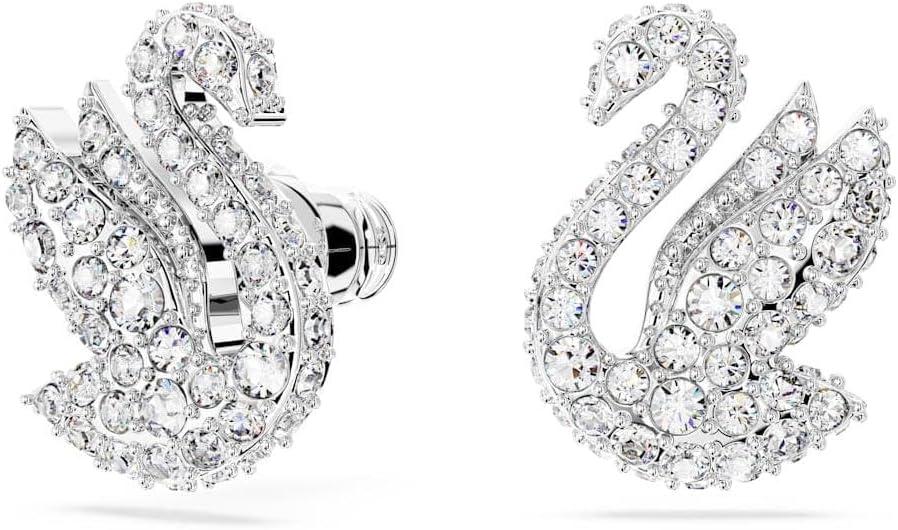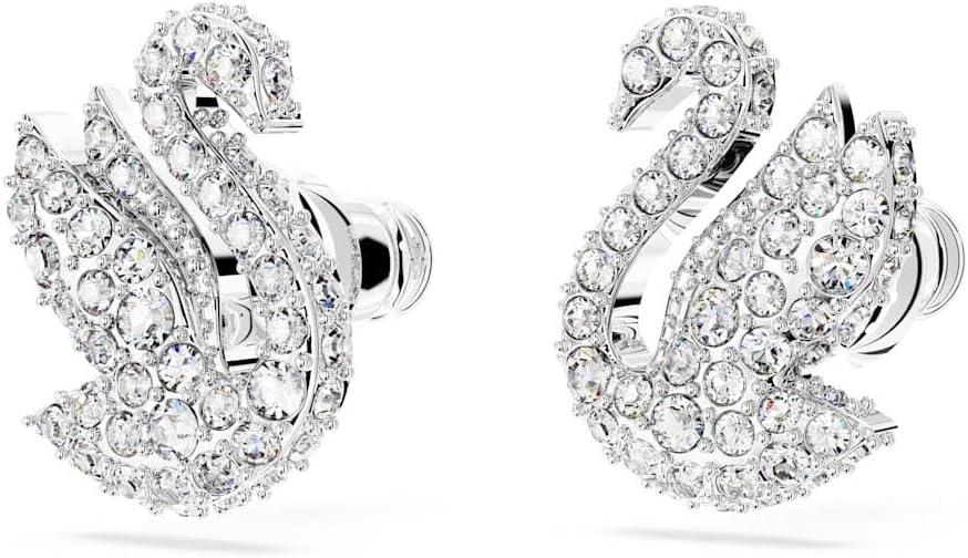 Swarovski Iconic Swan Crystal Necklace, Earrings, Bracelet Jewelry Collection, Clear Crystals on a Rhodium Tone Finish(Stud Earrings)