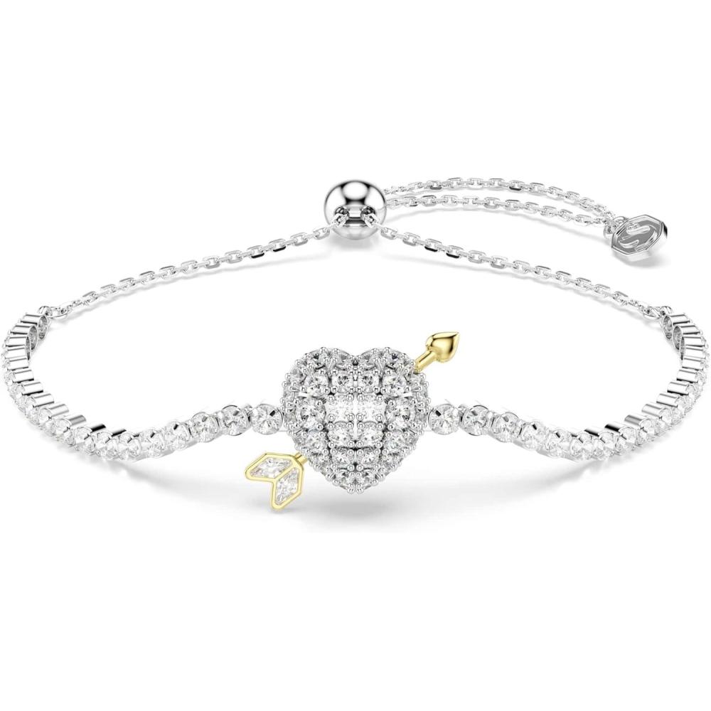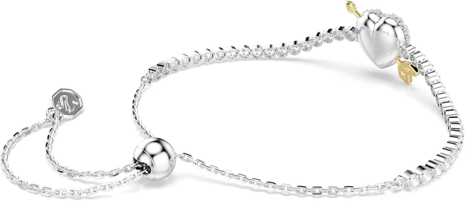 Swarovski Idyllia bracelet, Mixed cuts, Heart with arrow, White, Rhodium plated