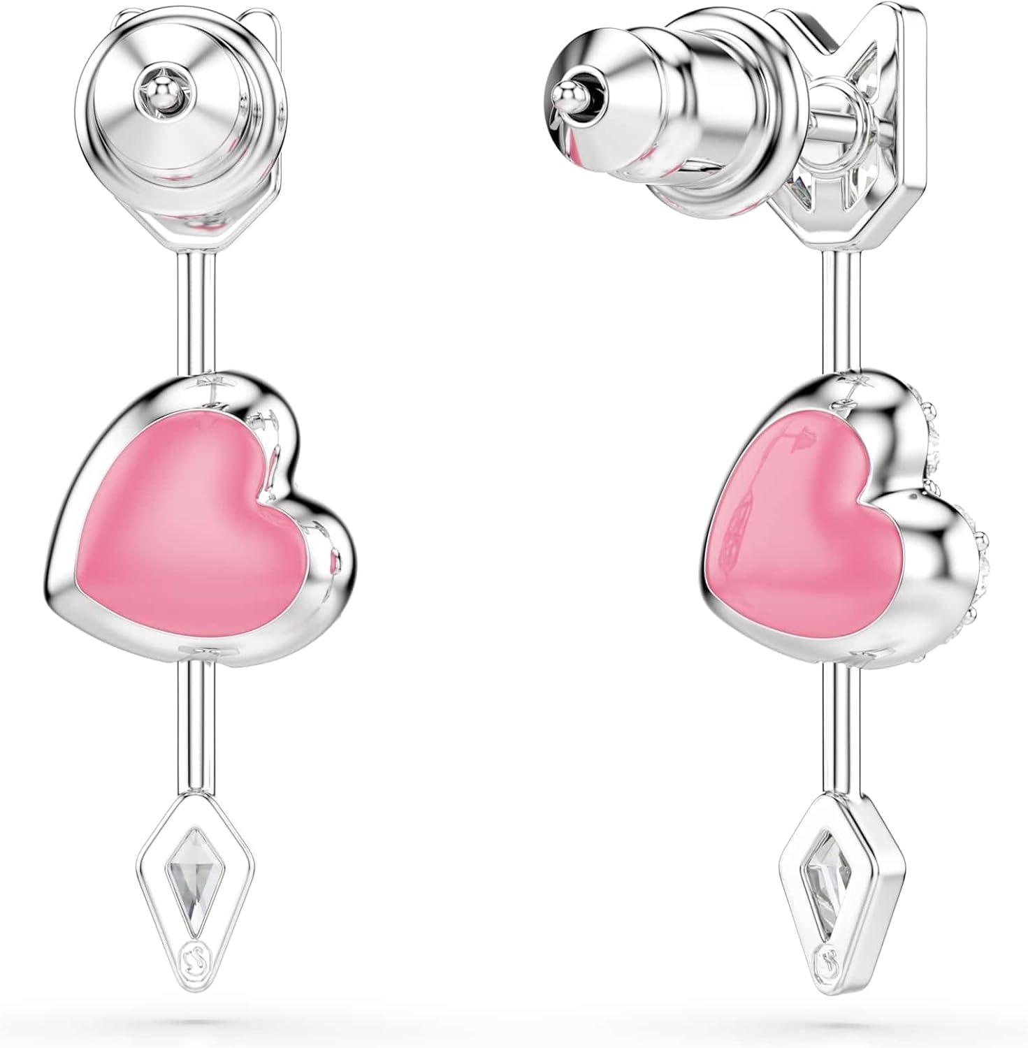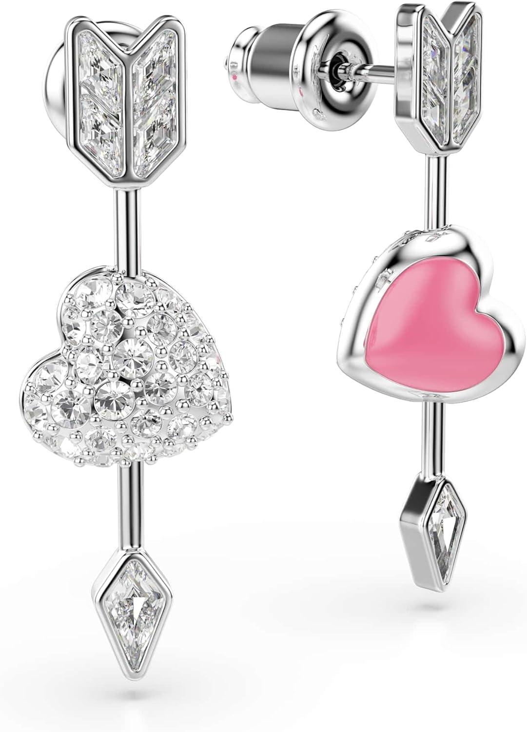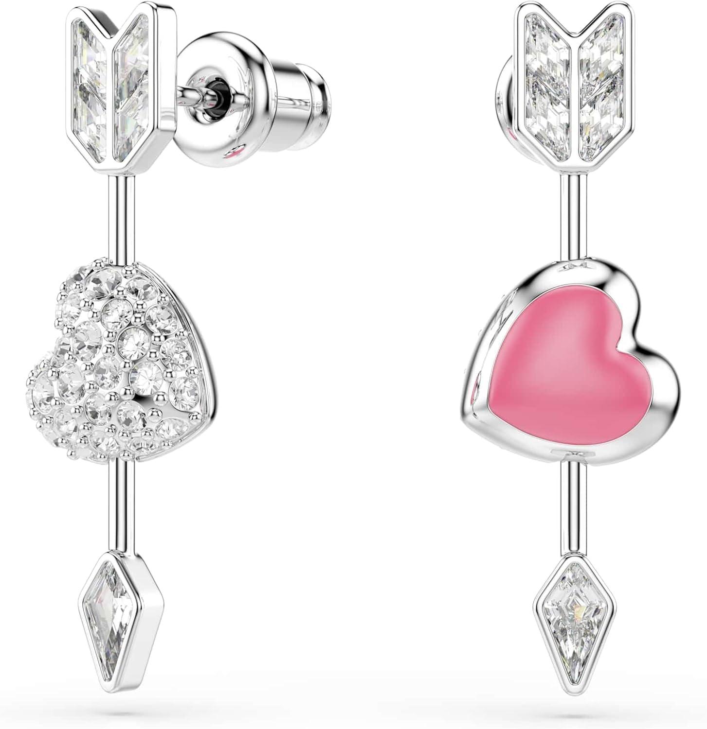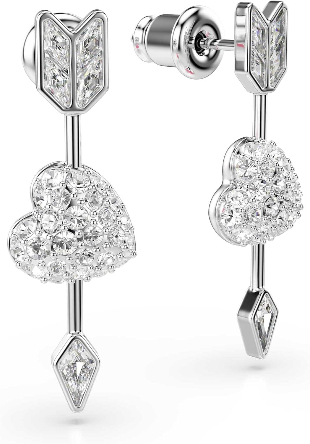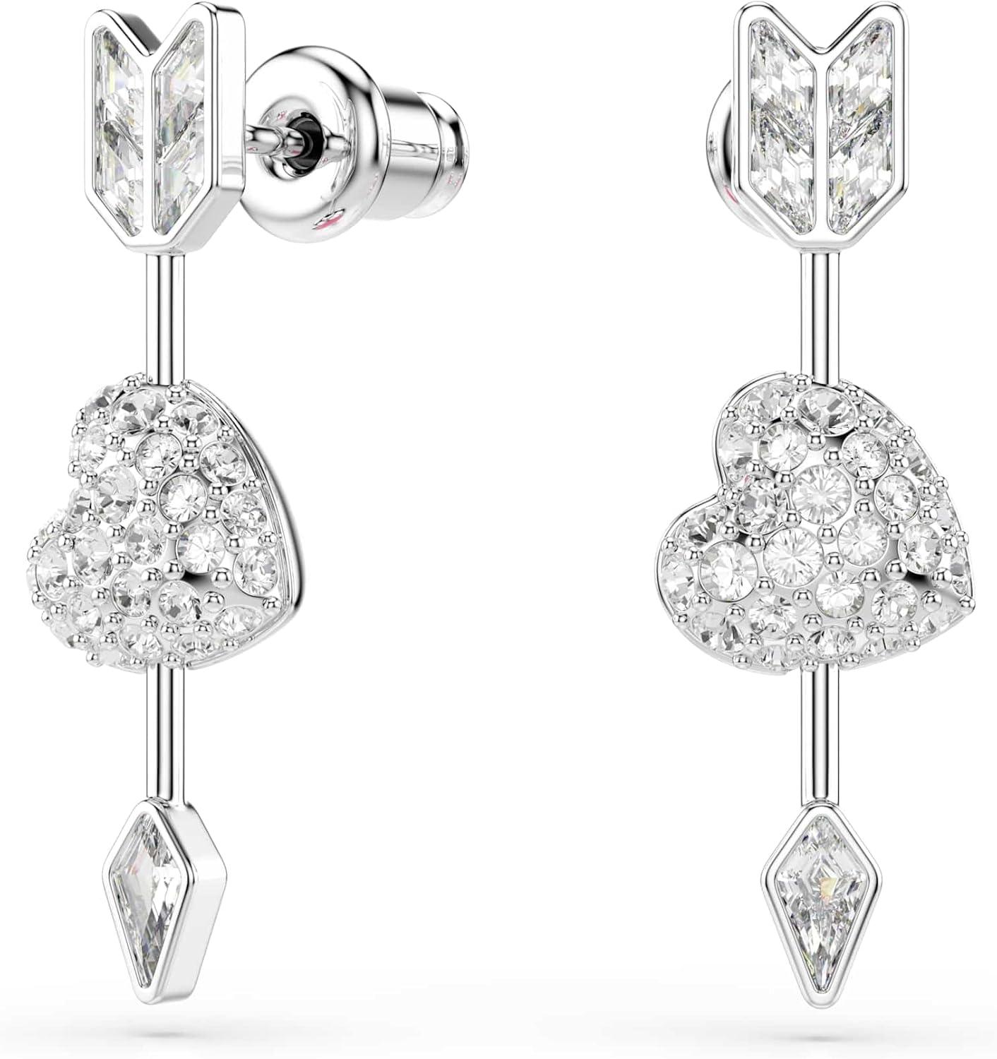 Swarovski Idyllia drop earrings, Mixed cuts, Heart with arrow, White, Rhodium plated