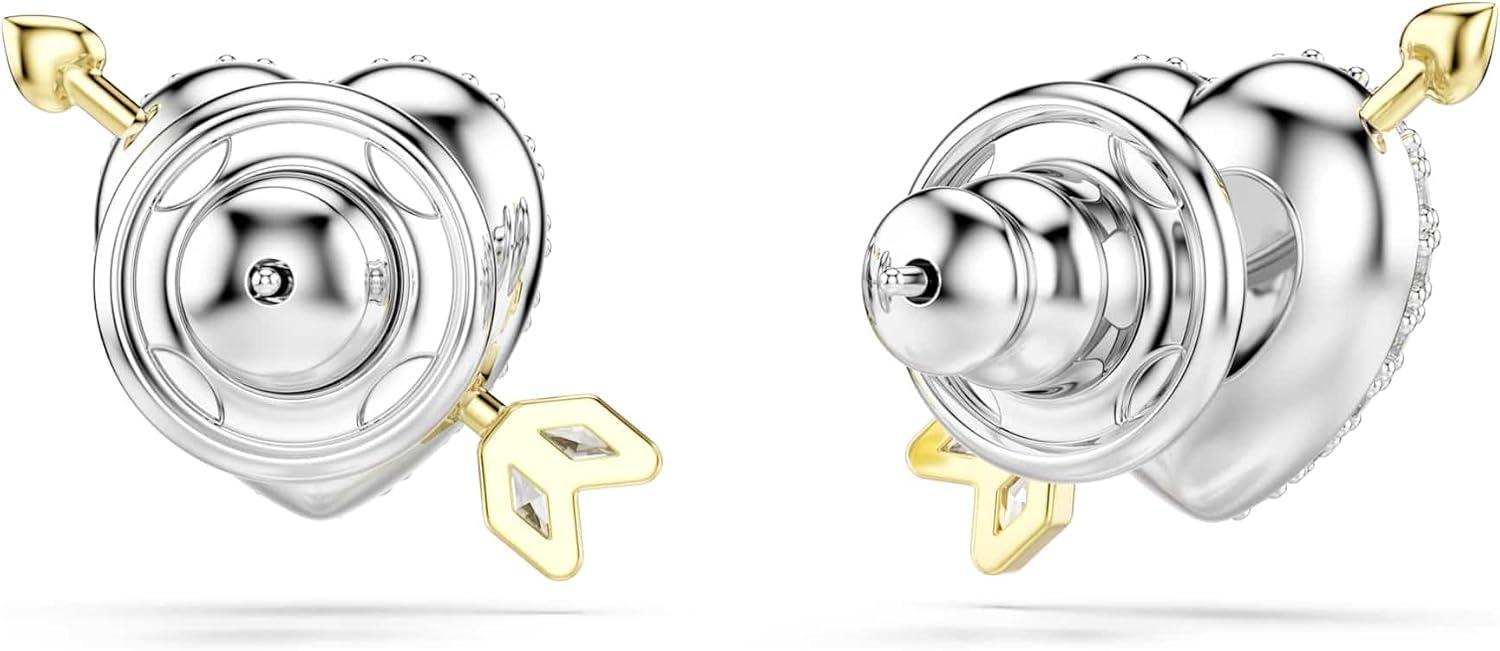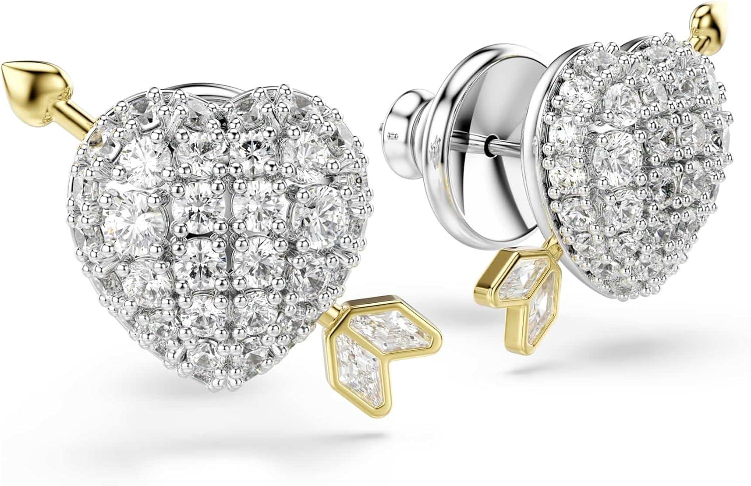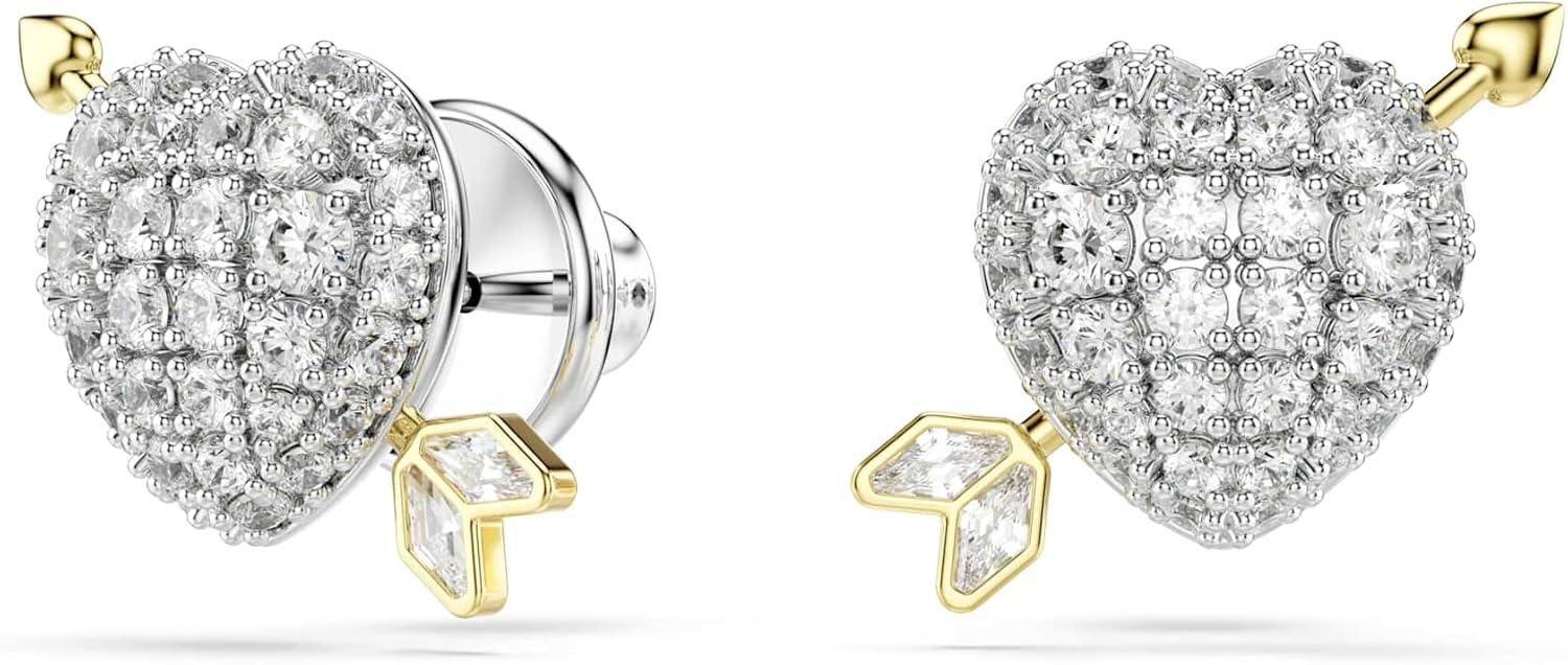 Swarovski Idyllia stud earrings, Mixed cuts, Heart with arrow, White, Mixed metal finish