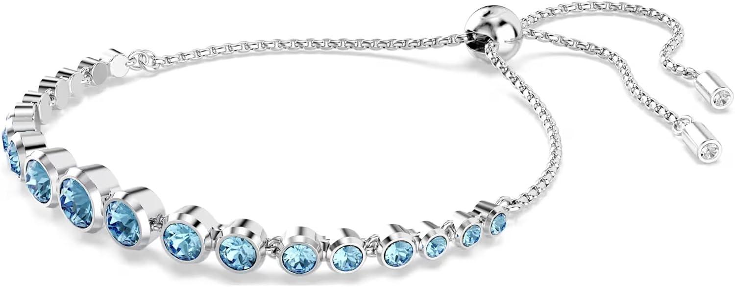 Swarovski Imber Tennis bracelet, Mixed round cuts, Blue, Rhodium finish