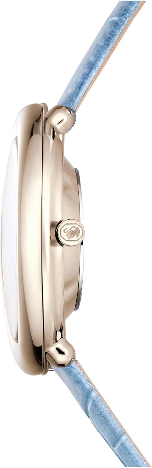 Swarovski Imber Watch, Swiss Made, Leather Strap, Blue, Champagne Gold-Tone Finish