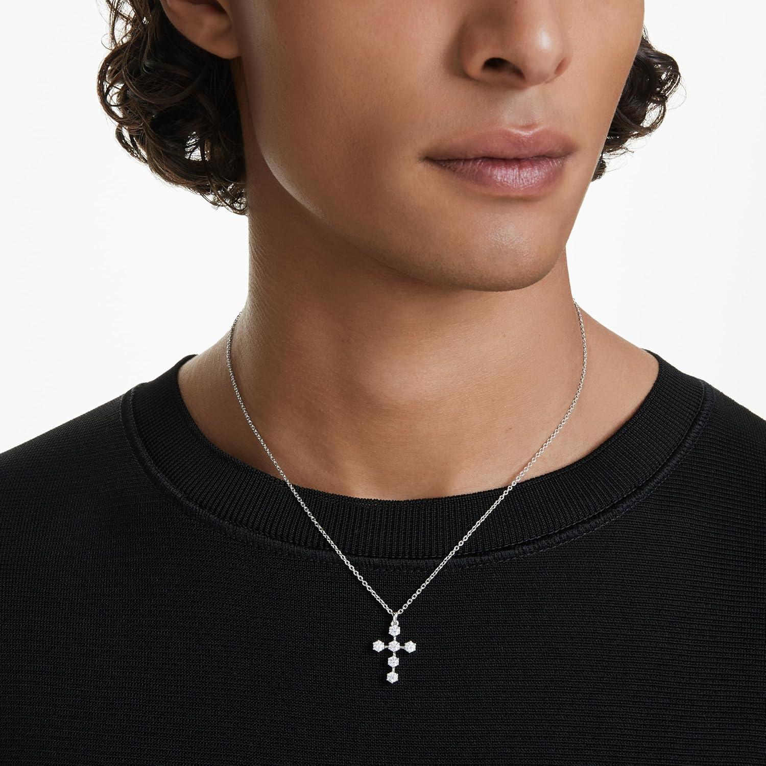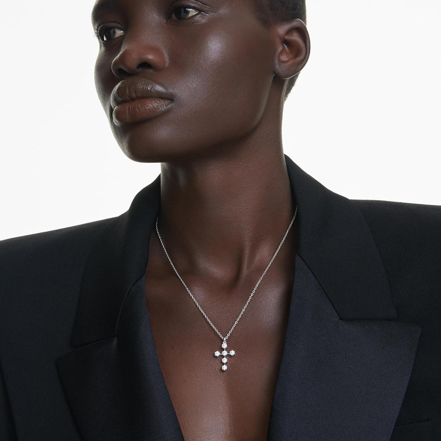 Swarovski Insigne pendant, Round cut, Cross, Clear, Rhodium Finished