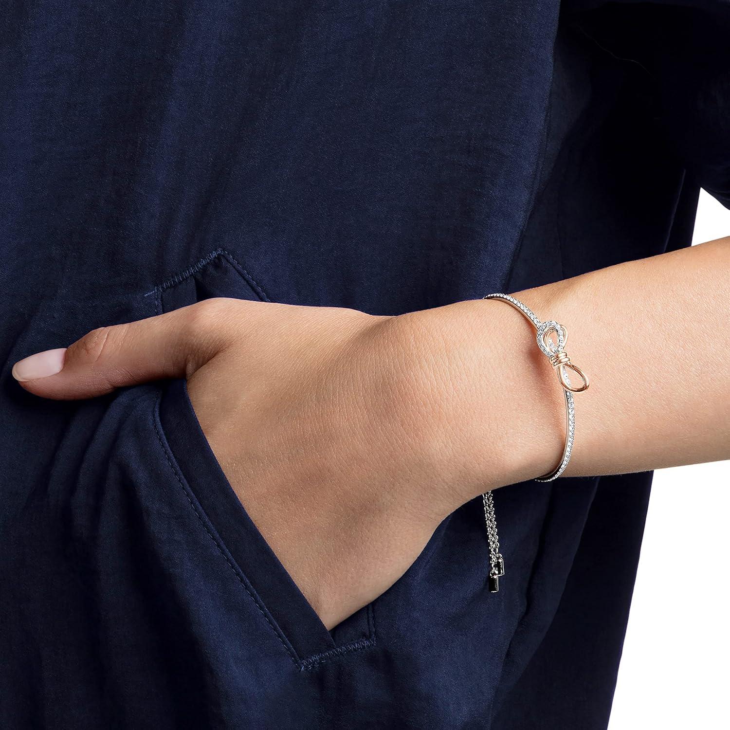 Swarovski Lifelong Bow Necklace and Bracelet Jewelry Collection, Clear Crystals, Rhodium Finish(Silver)