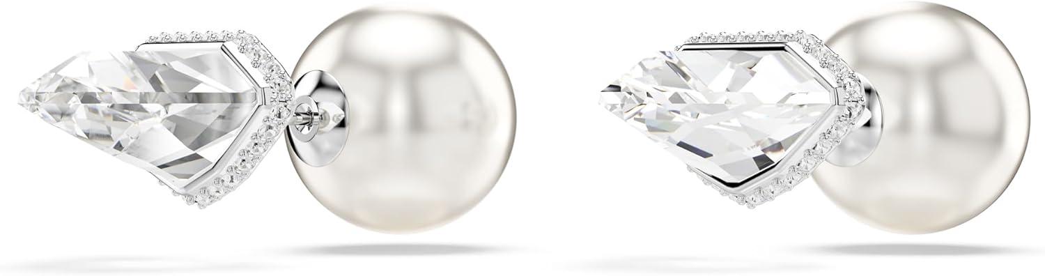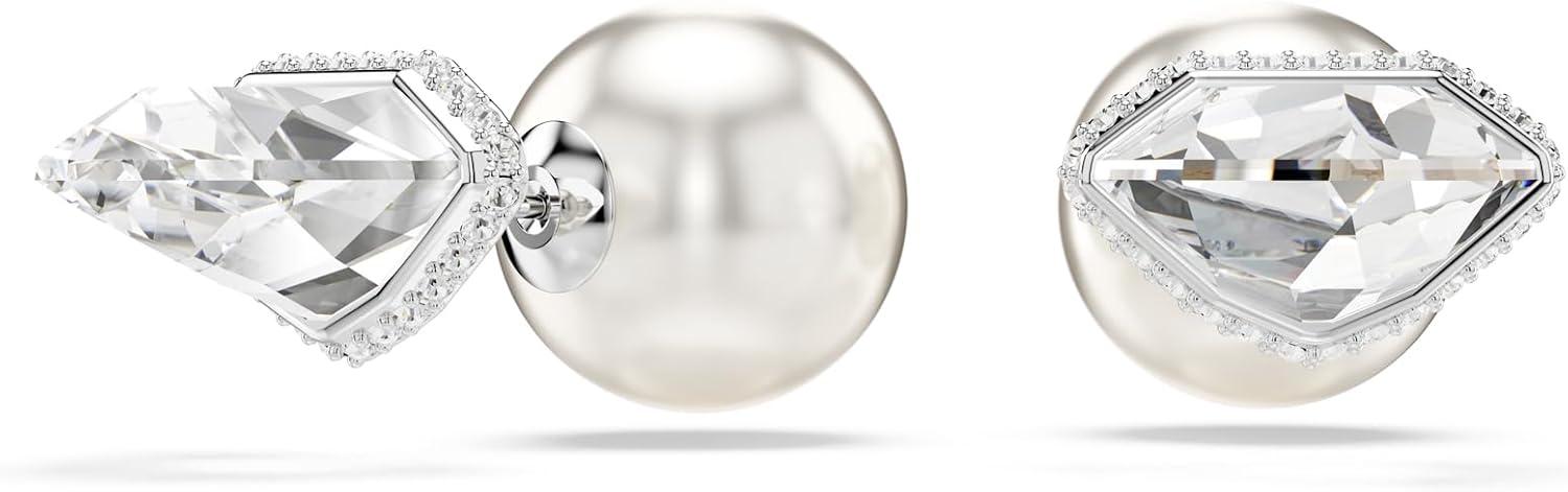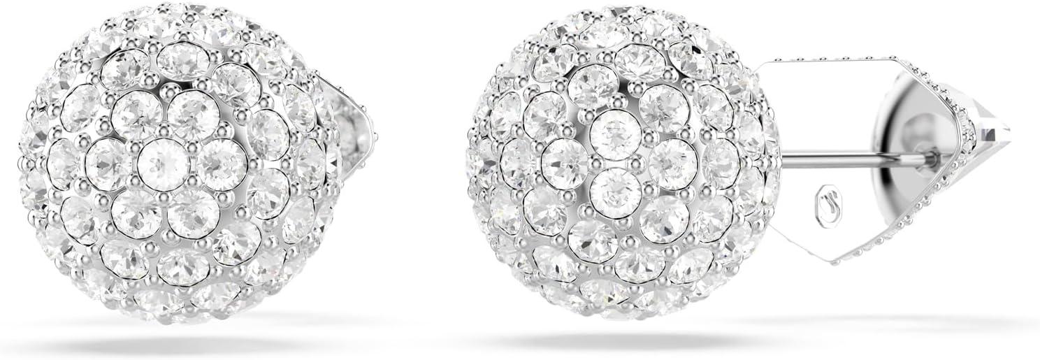 Swarovski Lucent stud earrings, Pavé, Ball, Clear, Rhodium Finish