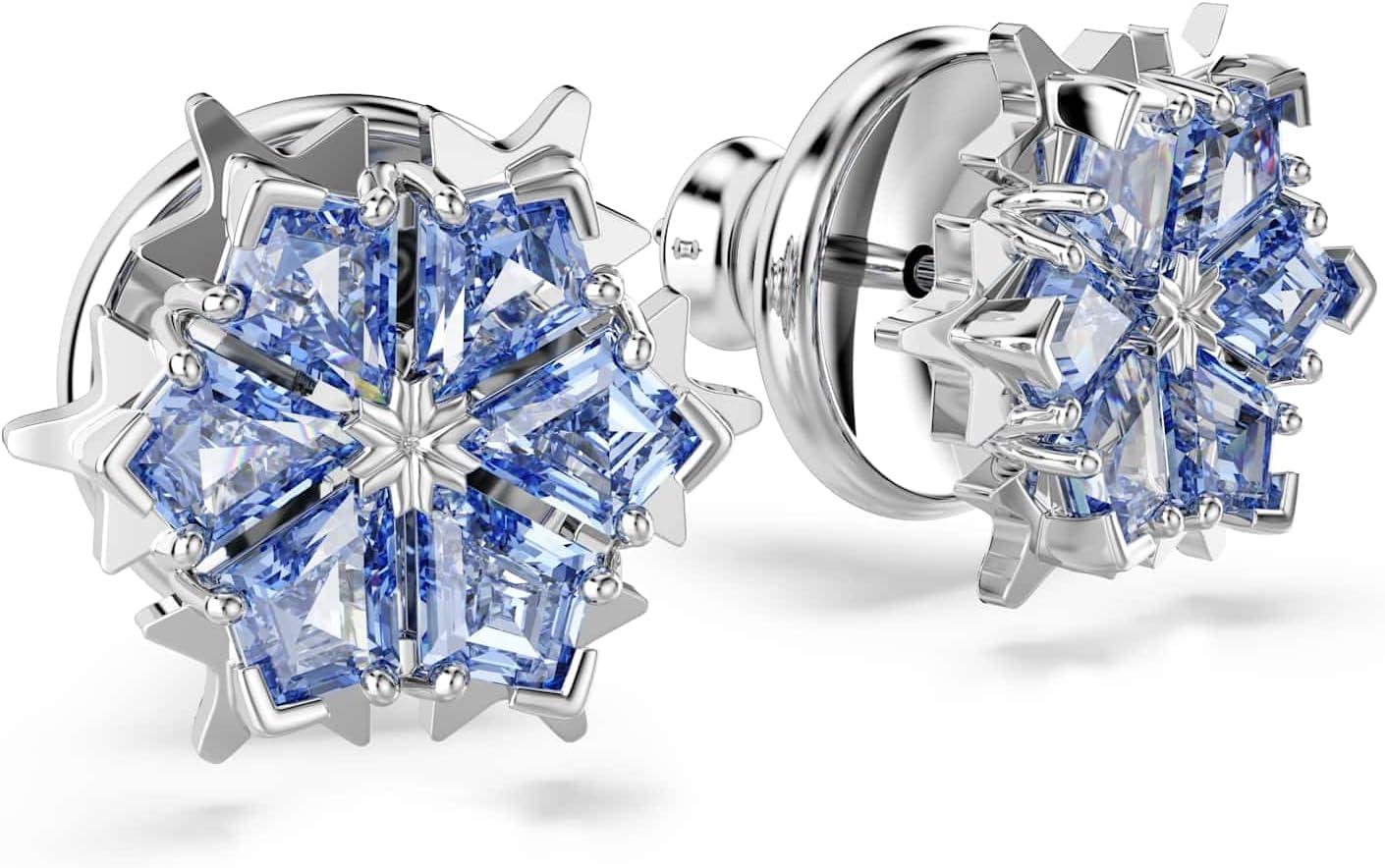 Swarovski Magic stud earrings, Snowflake, Blue, Rhodium finish