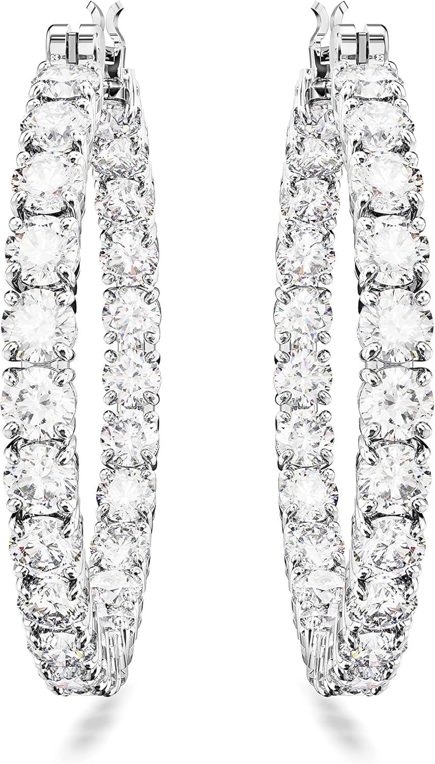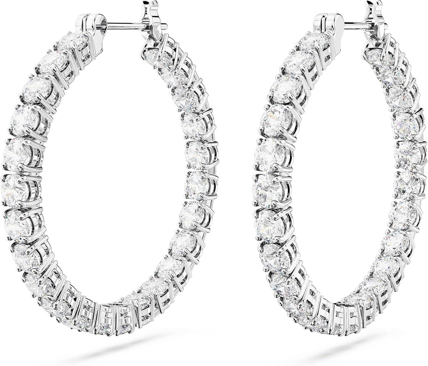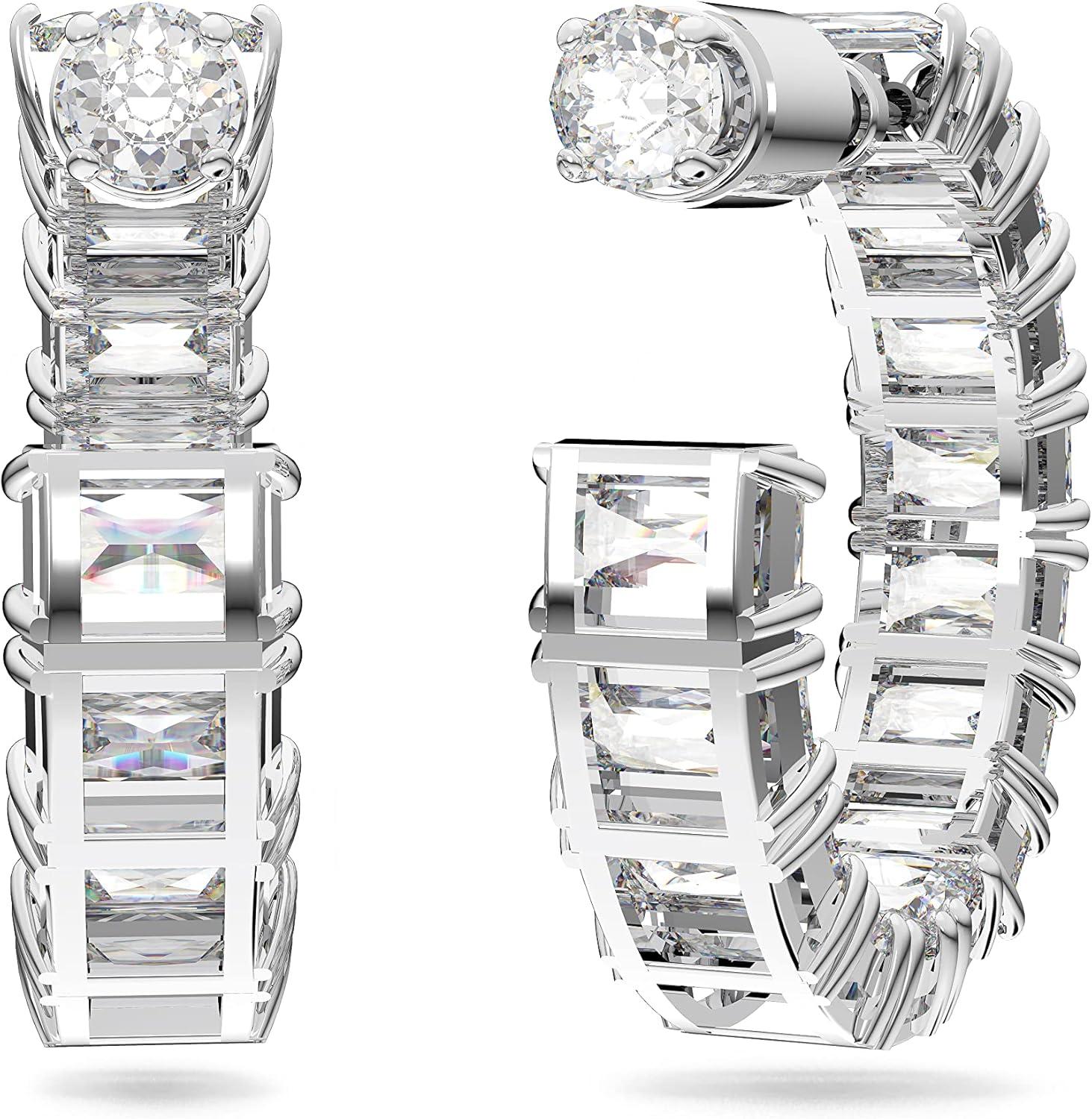 Swarovski Matrix Crystal Hoop Earrings, Blue and Clear Crystals, Rhodium Finish(Clear Crystal)