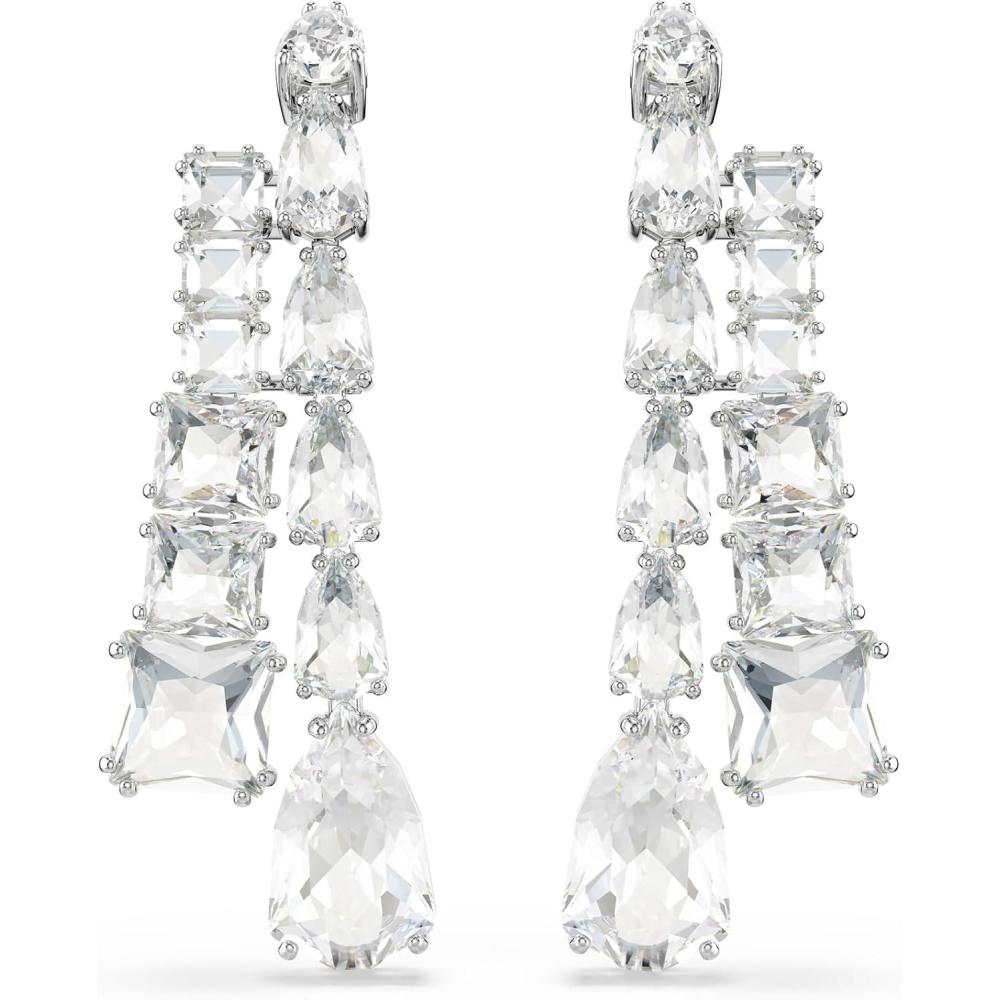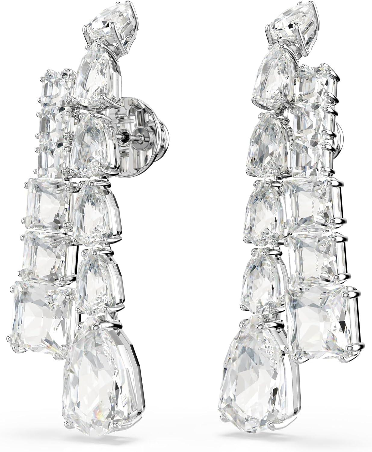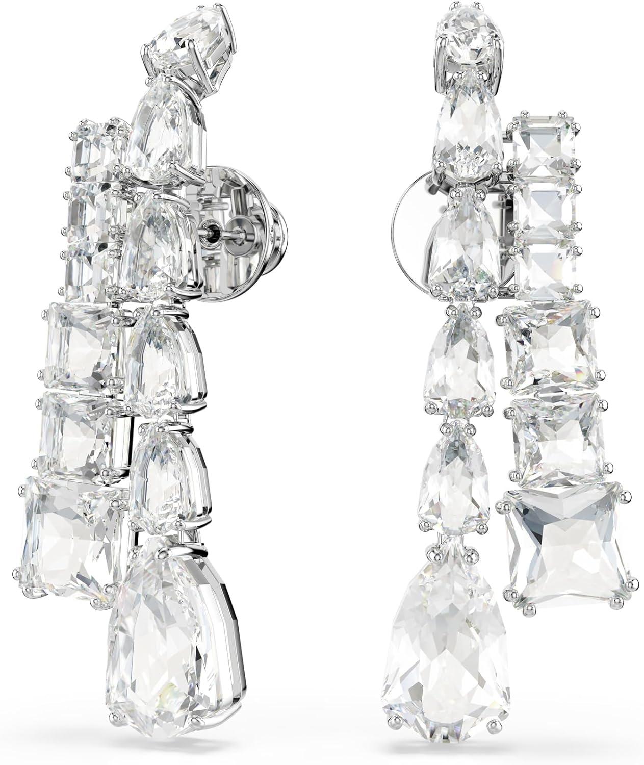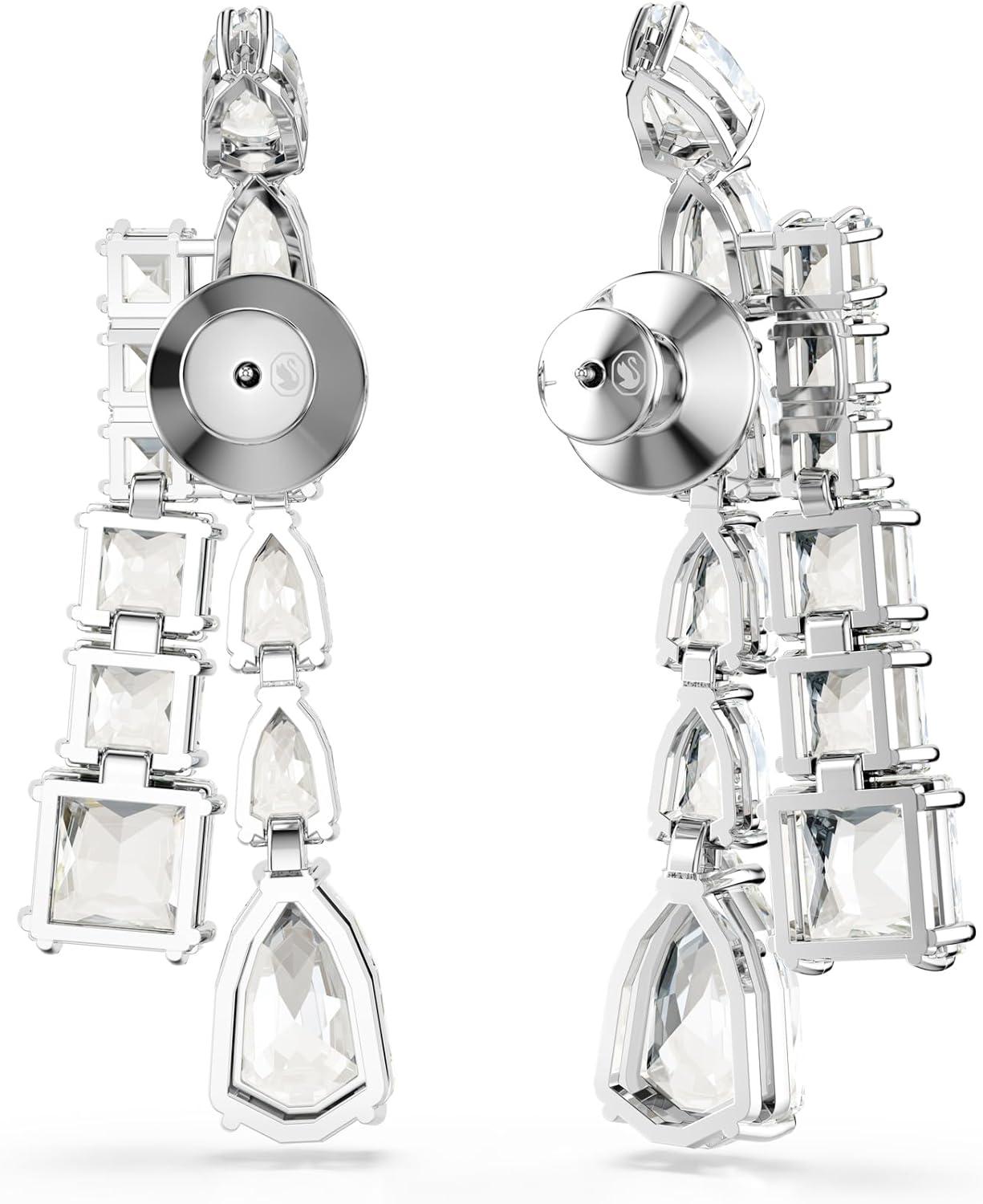 Swarovski Matrix drop earrings, Mixed cuts, Clear, Rhodium Finish