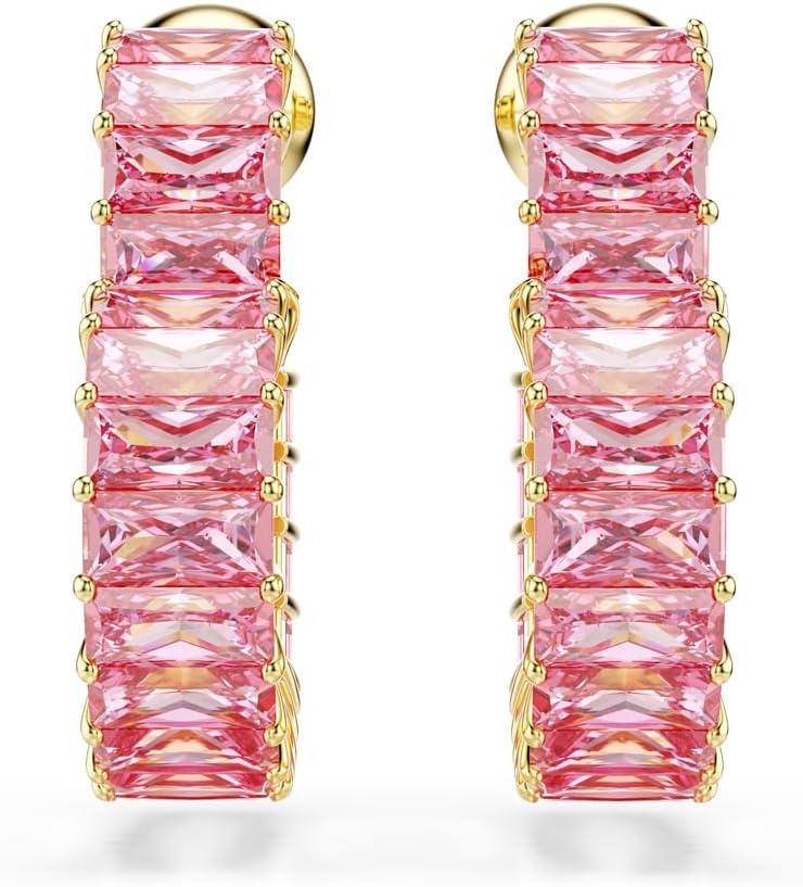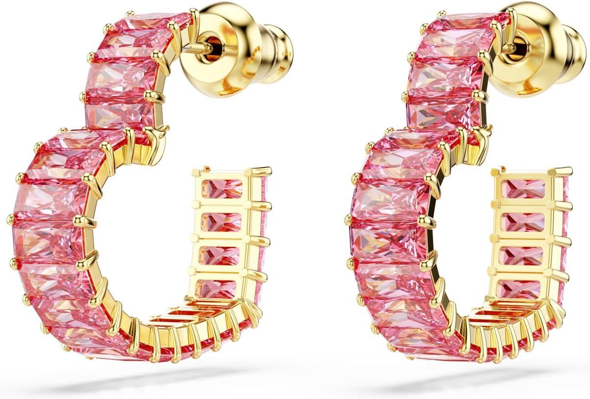 Swarovski Matrix Hoop Earrings, Baguette Cut, Heart, Pink, Clear Crystals, Rhodium and Gold-Tone Finishes(Pink Crystal)