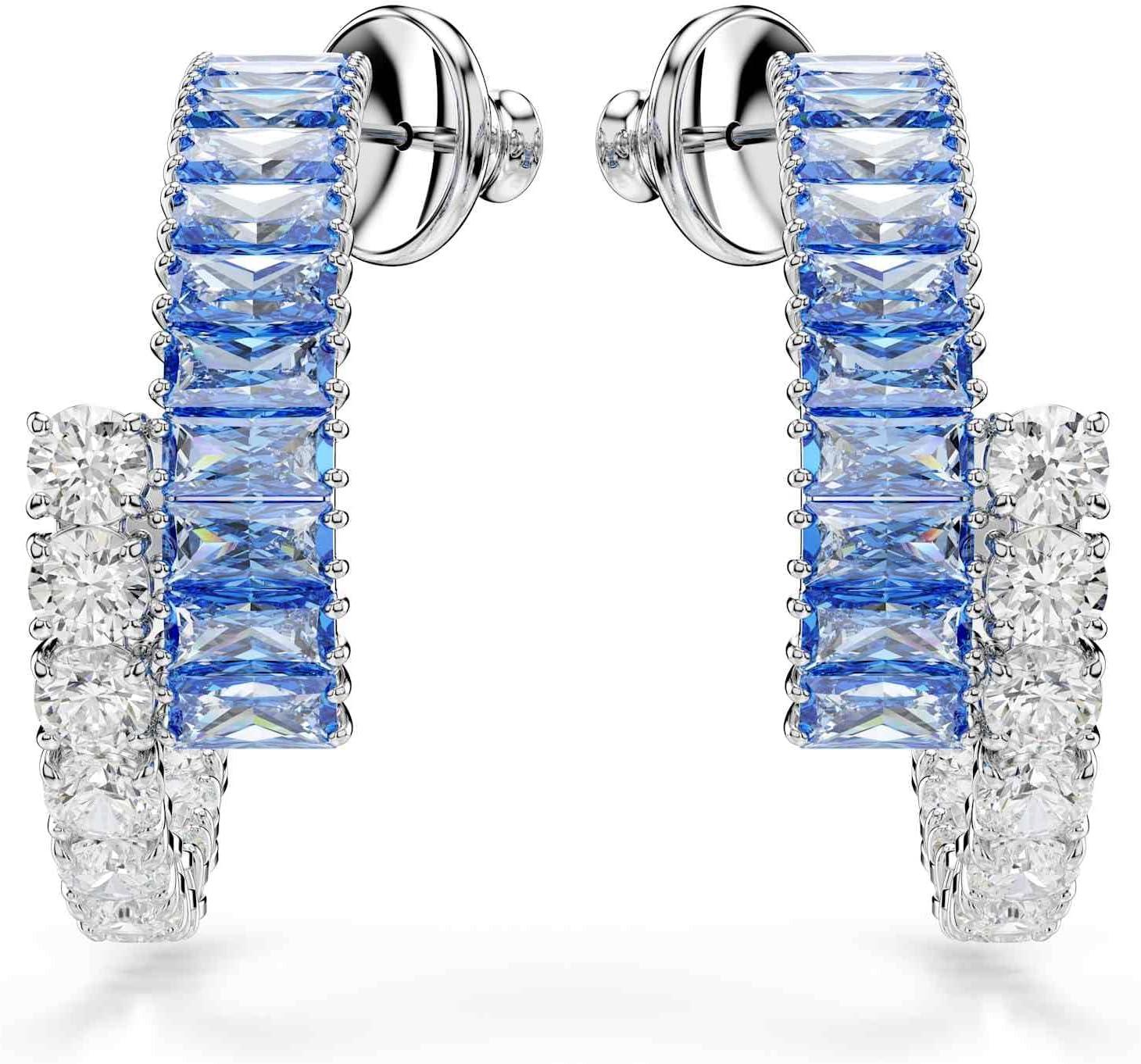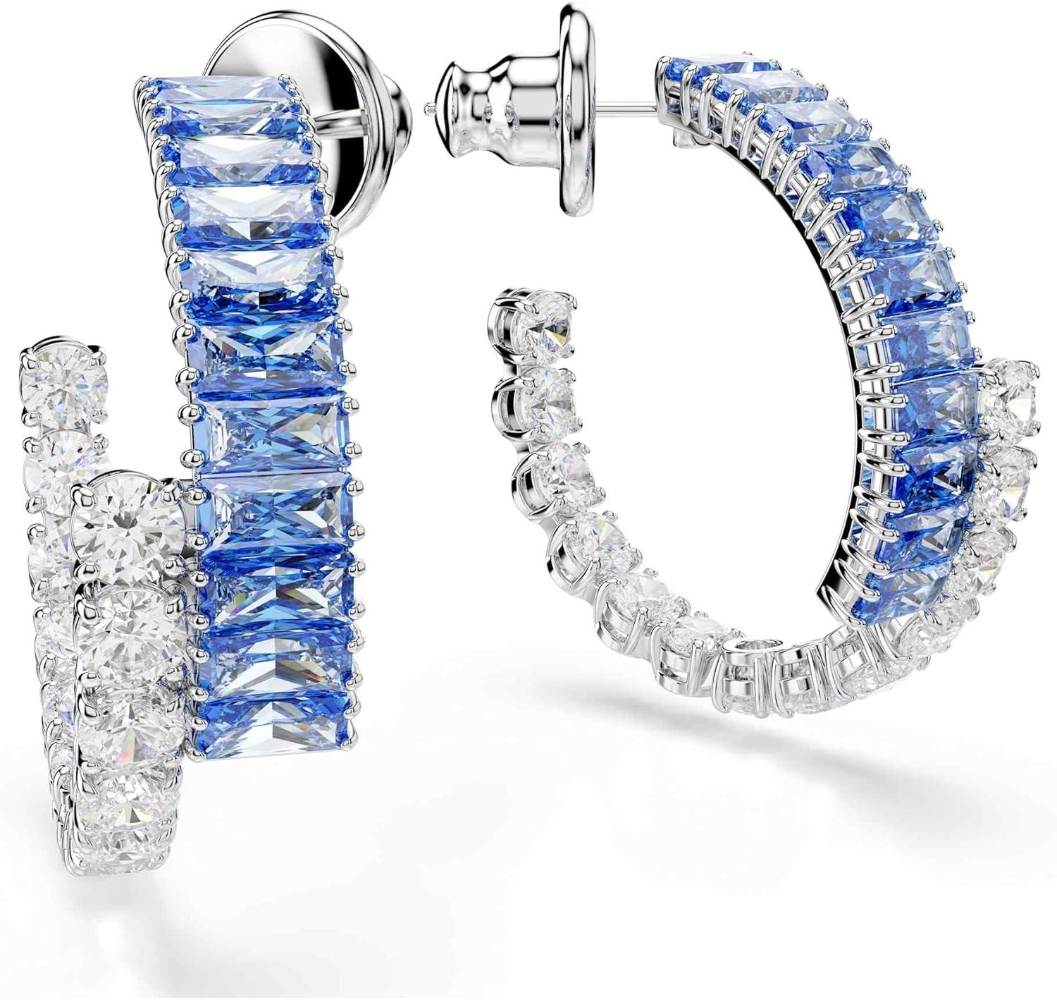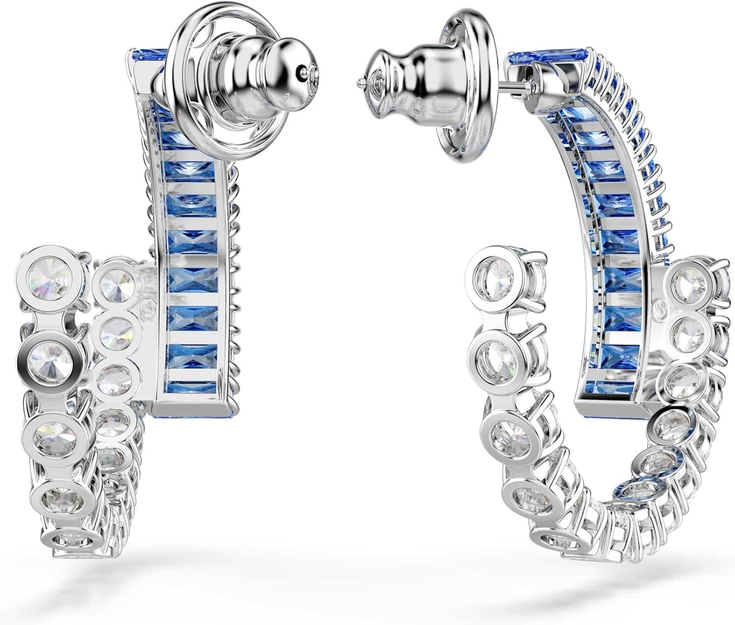Swarovski Matrix hoop earrings, Mixed cuts, Blue, Rhodium Finish