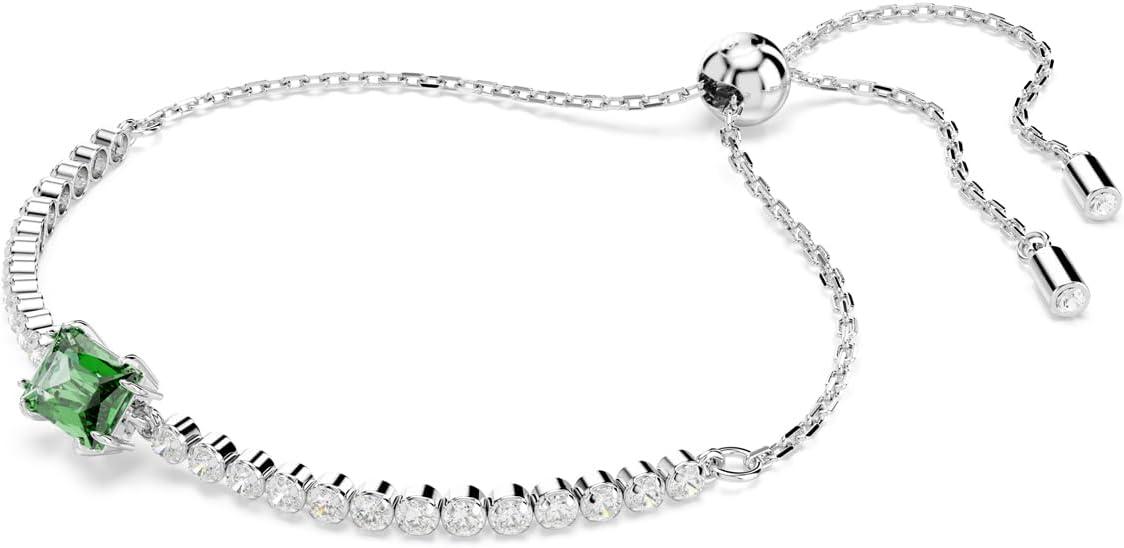 Swarovski Matrix Tennis Bracelet, Green, Blue Crystals, Rhodium Finish(Green Crystal)