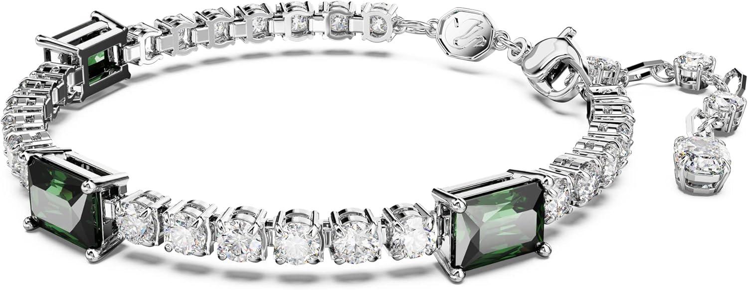 Swarovski Matrix Tennis Bracelet, Pink and Clear Round-Cut Stones in a Rhodium Finished Setting(Green Crystal Bracelet)