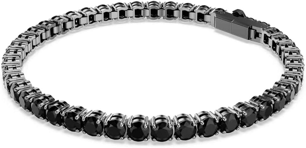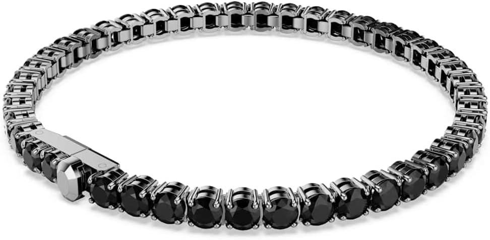 Swarovski Matrix Tennis bracelet, Round cut, Black, Ruthenium finish