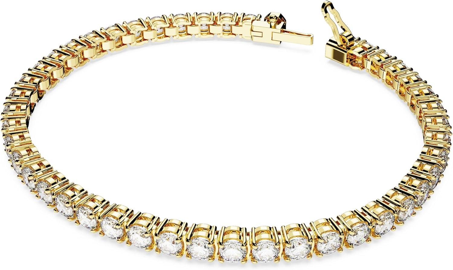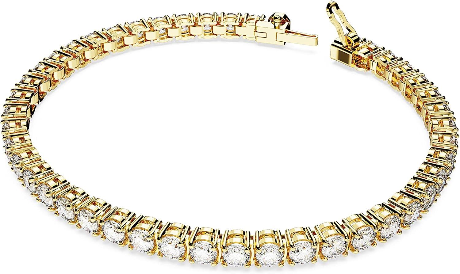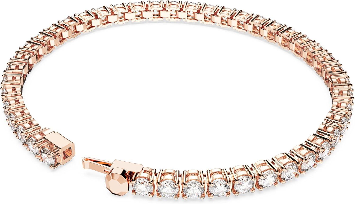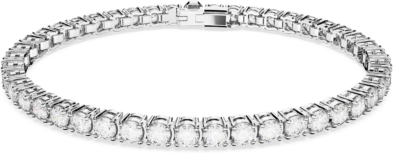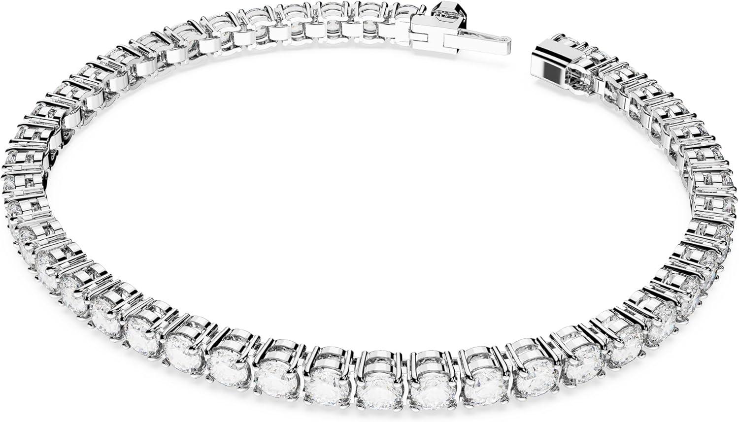 Swarovski Matrix Tennis Bracelet, Round Cut Crystals, Pink, Blue, Black, Clear, Rhodium, Gold-Tone and Rose Gold-Tone Finishes(Clear Crystal)