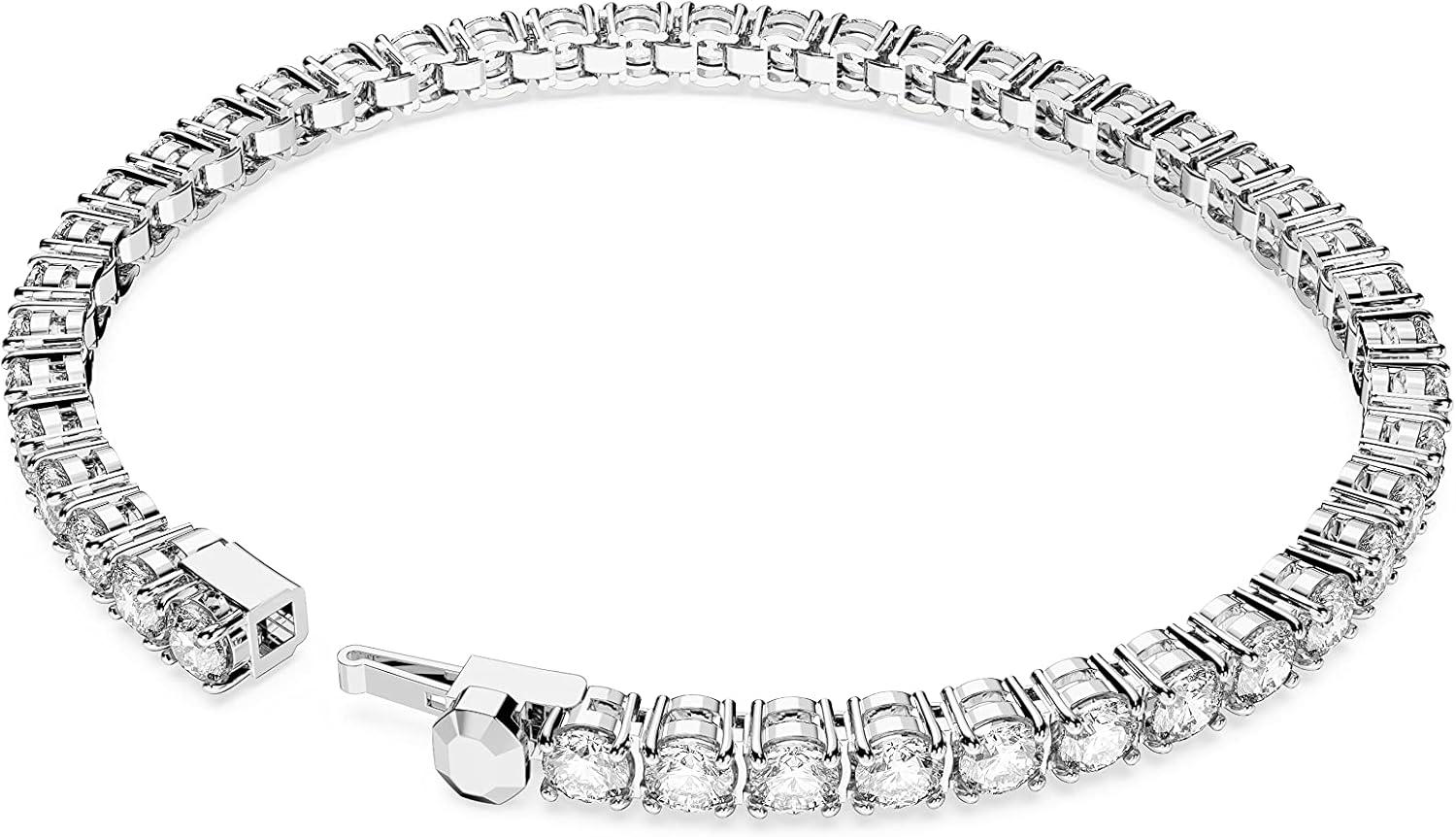Swarovski Matrix Tennis Bracelet, Round Cut Crystals, Pink, Blue, Black, Clear, Rhodium, Gold-Tone and Rose Gold-Tone Finishes(Silver Bracelet)
