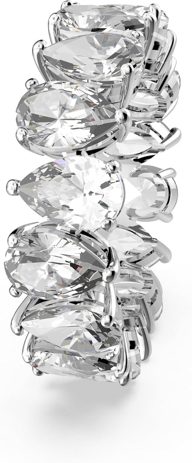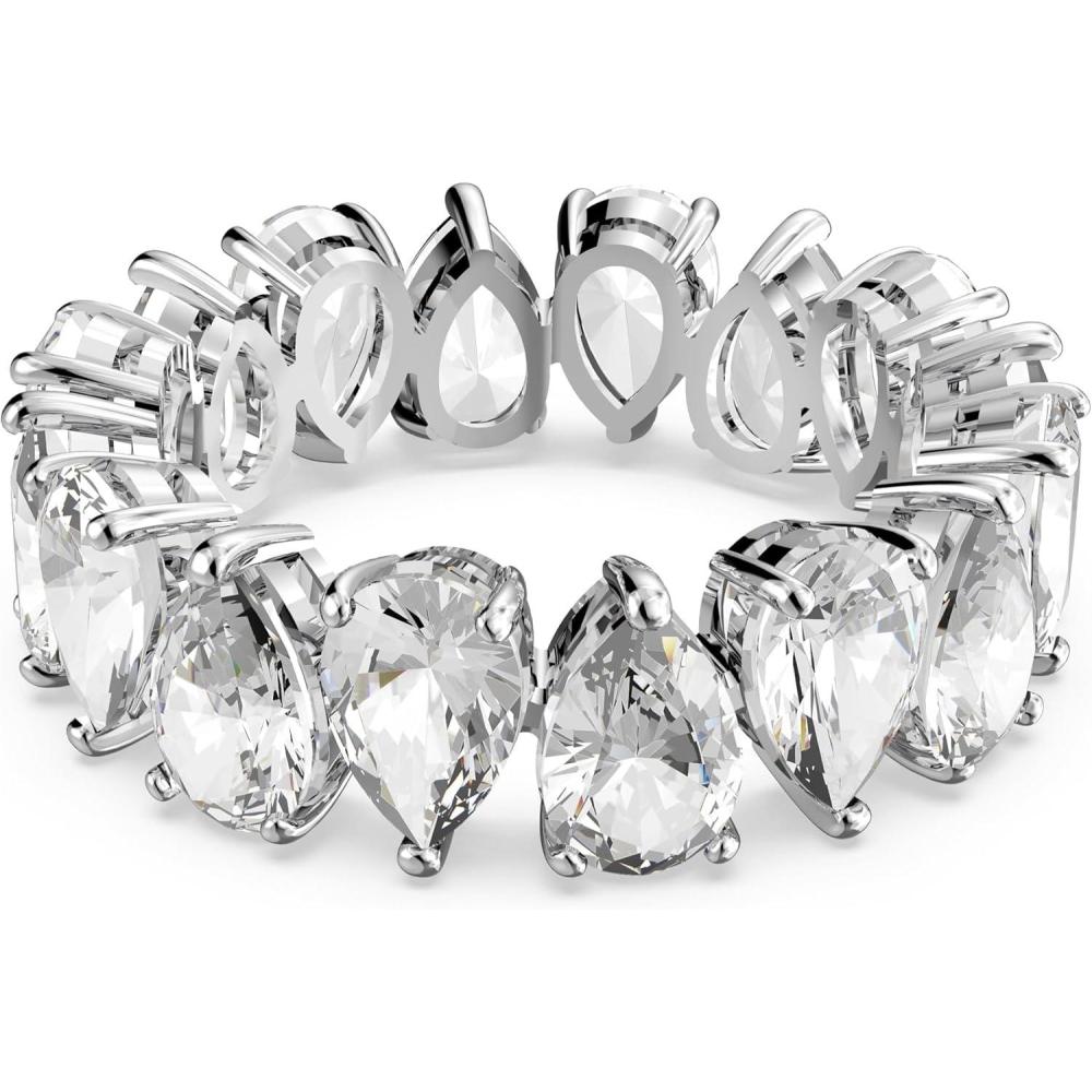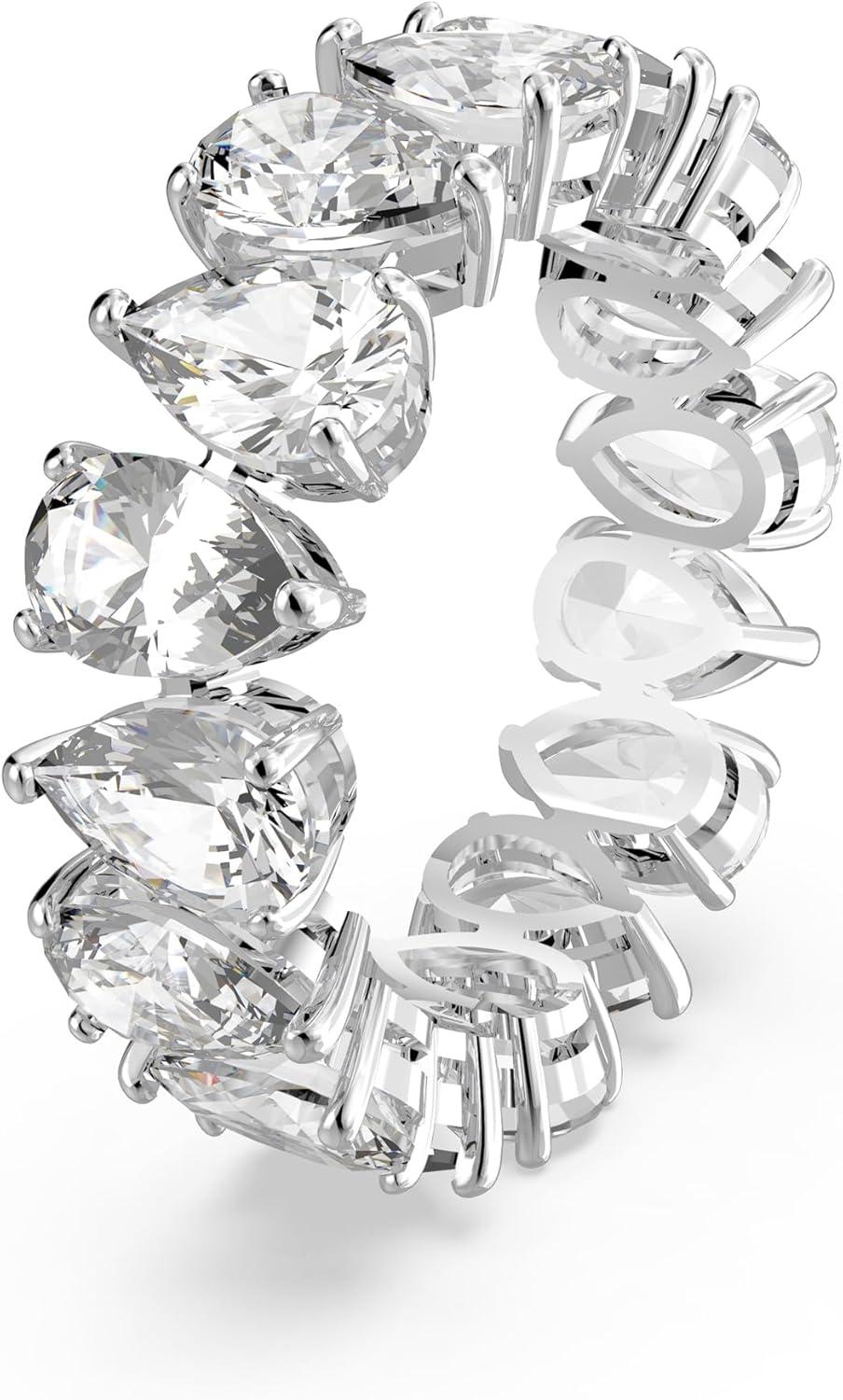 Swarovski Matrix Vittore Ring, Pear-Shaped Clear Crystal Stones, Rhodium Finish(EU 60 (US 8.75))