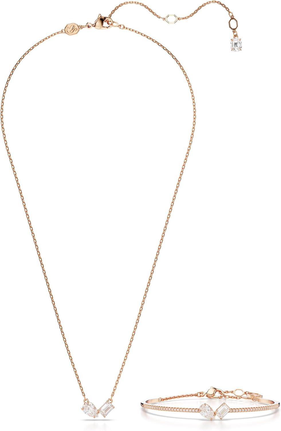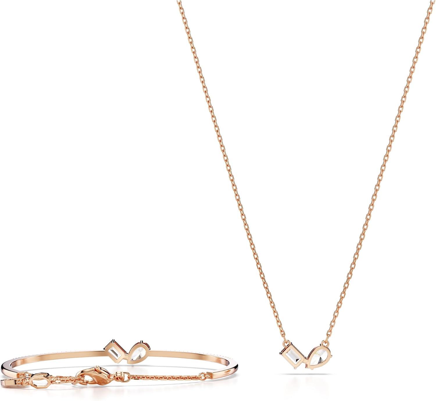 Swarovski Mesmera Necklace and Bracelet Set, Clear Mixed-Cut Stones in a Rose Gold-Tone Finished Setting, Part of the Mesmera Collection