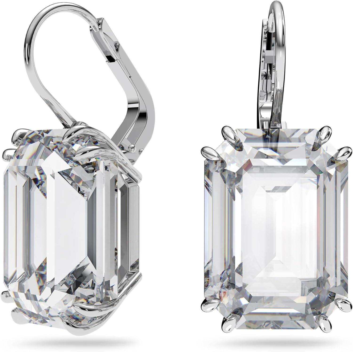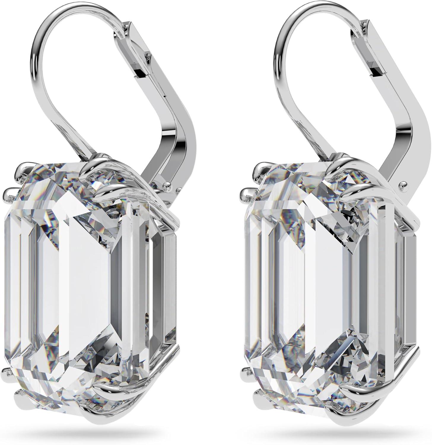 Swarovski Millenia Drop Earrings with Clear Oversized Octagon Cut Crystal in Rhodium Finish