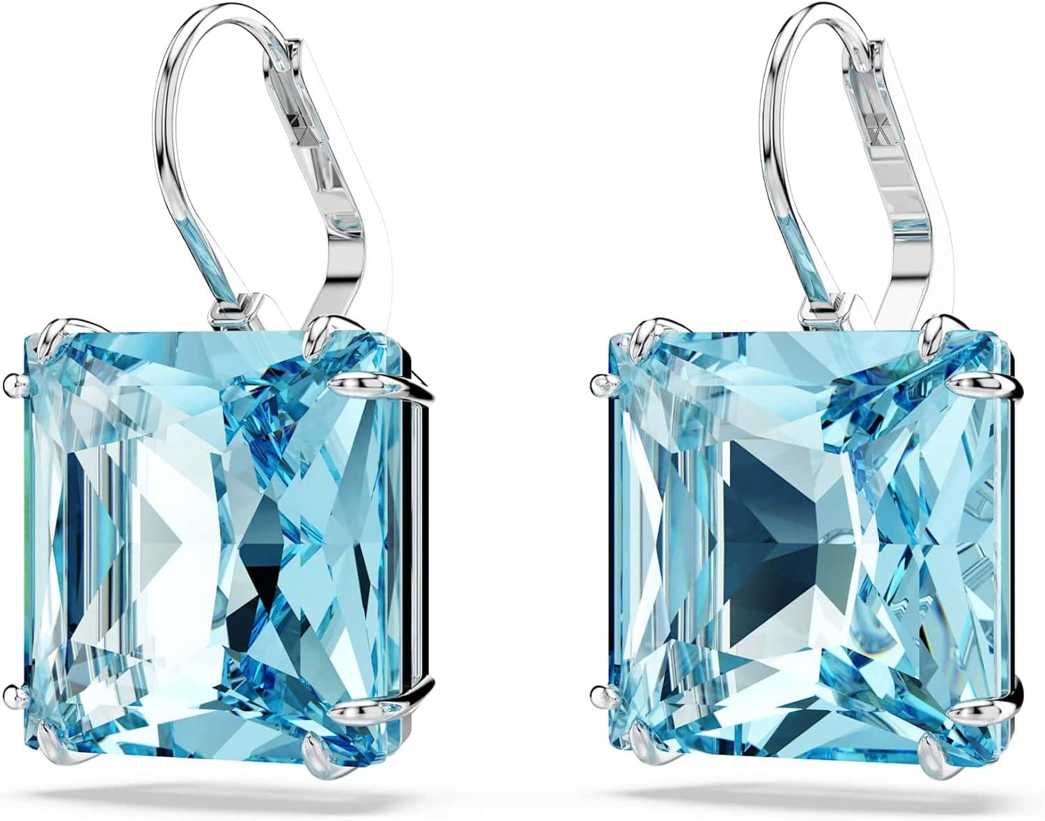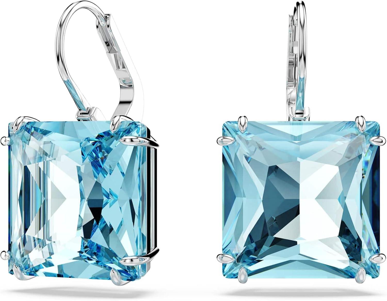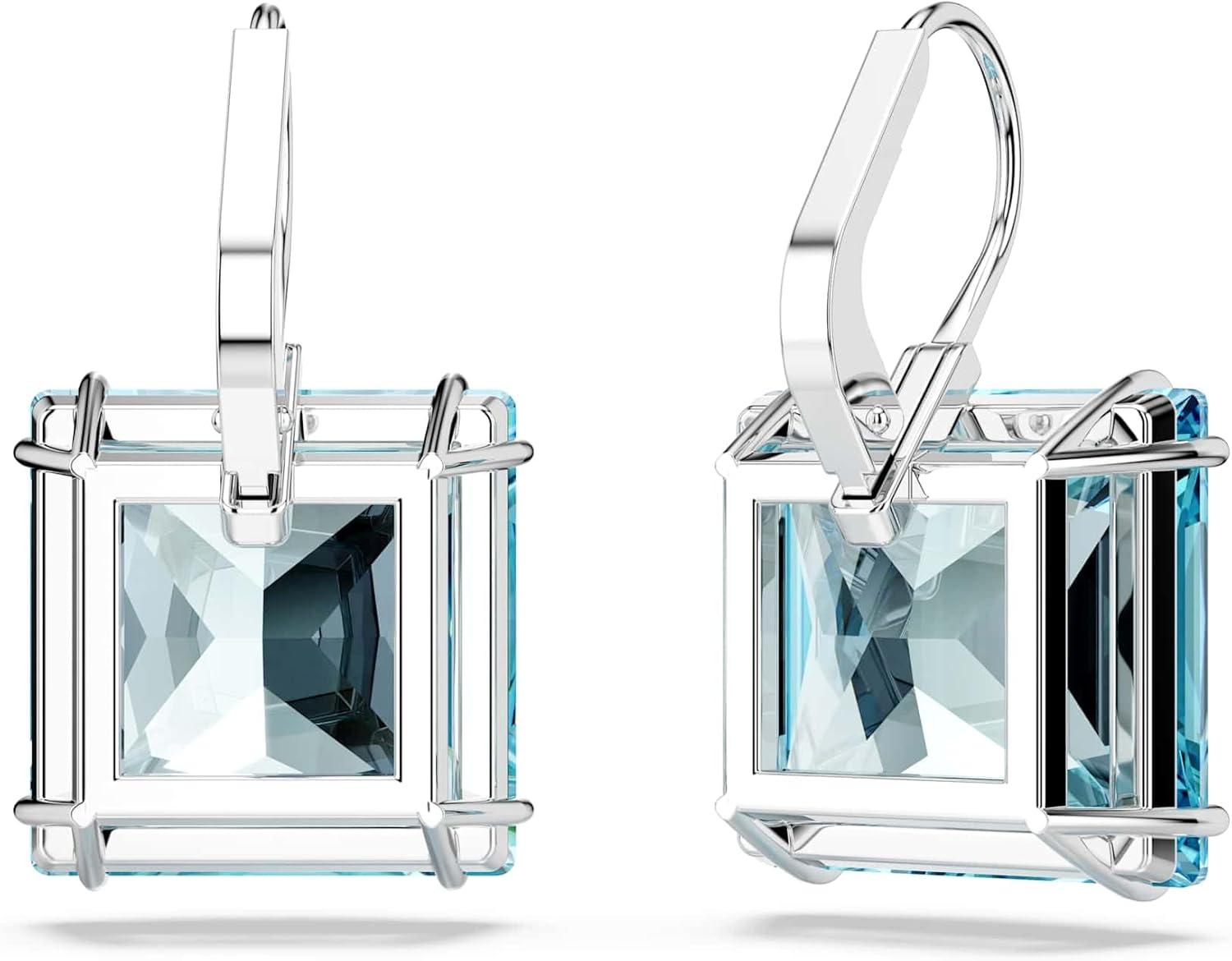 Swarovski Millenia Earrings, Square cut crystal, Blue, Rhodium plated