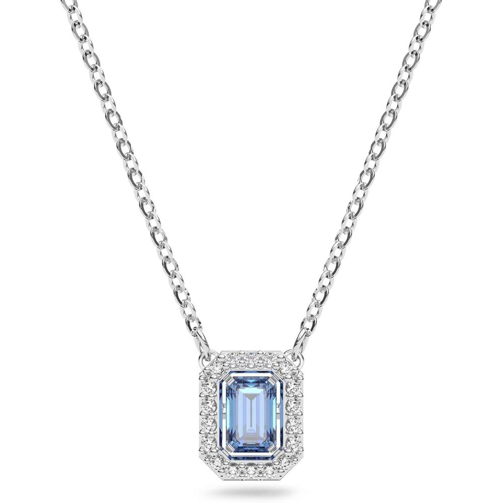 SWAROVSKI Millenia Necklace, Octagon Cut Zirconia, Blue, Rhodium Finish