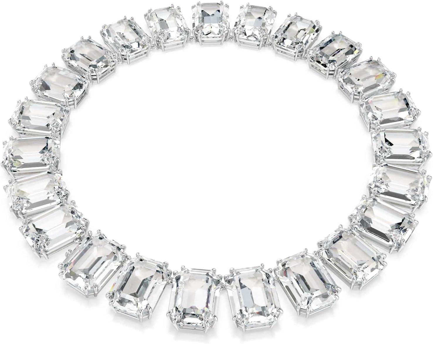 Swarovski Millenia necklace, Oversized crystals, Octagon cut, White, Rhodium finish