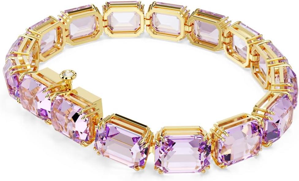 Swarovski Millenia Tennis bracelet, Octagon cut, Purple, Gold-tone finish
