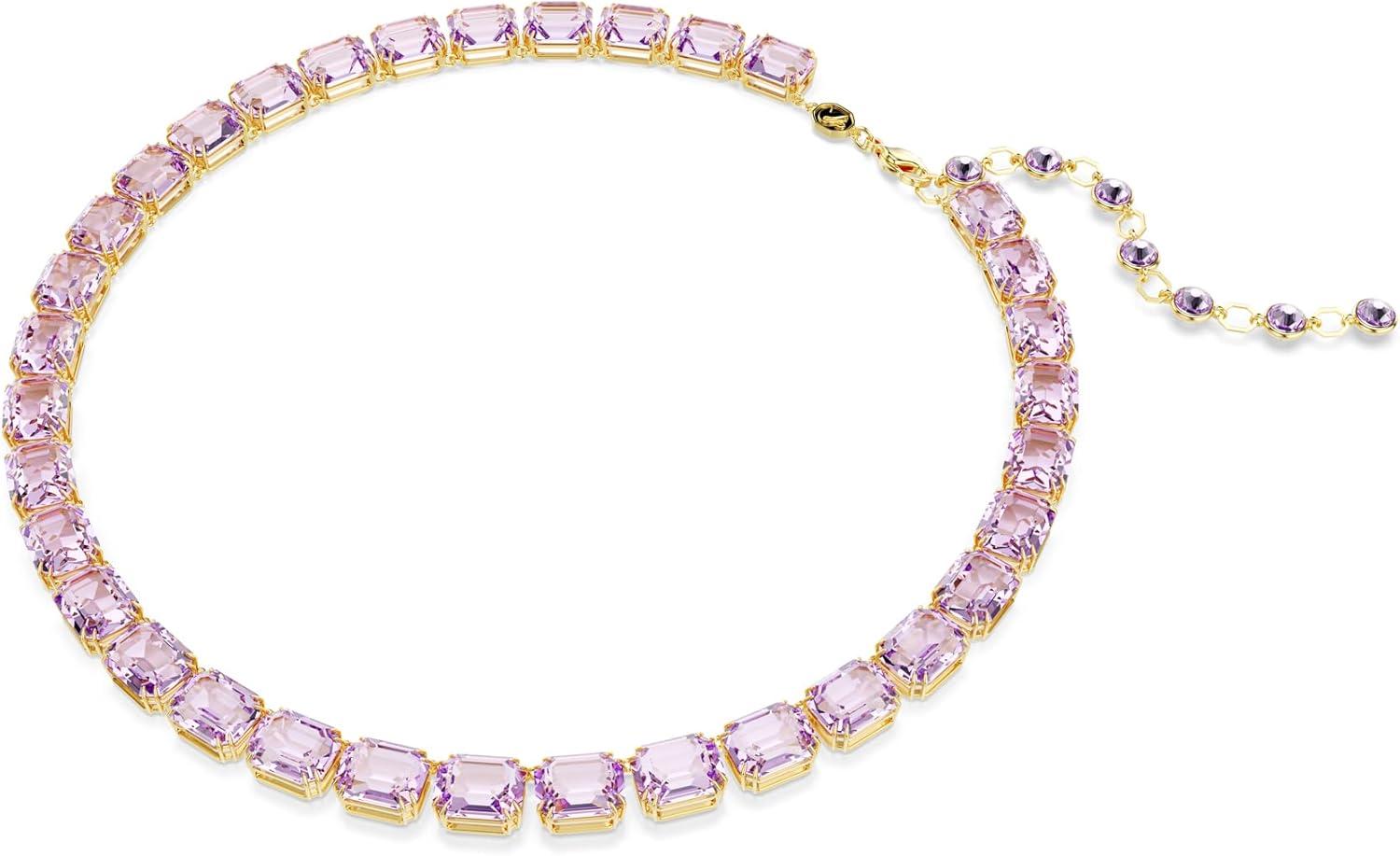 Swarovski Millenia Tennis necklace, Octagon cut, Purple, Gold-tone finish